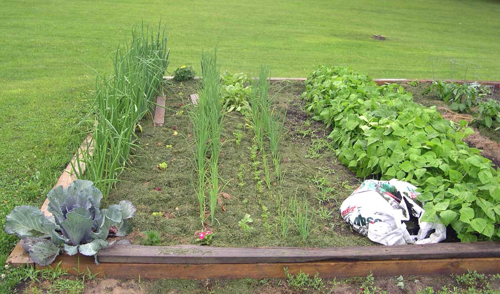 Compared to last year's soft bed (shown at left) of similar vegetables, my efforts this year look pretty sad. I refer to it as a softbed, as it's an area of the raised bed where I try never to walk through, other than on a walking board to spread my weight. Keeping out of the bed keeps the soil looser and easier to work.