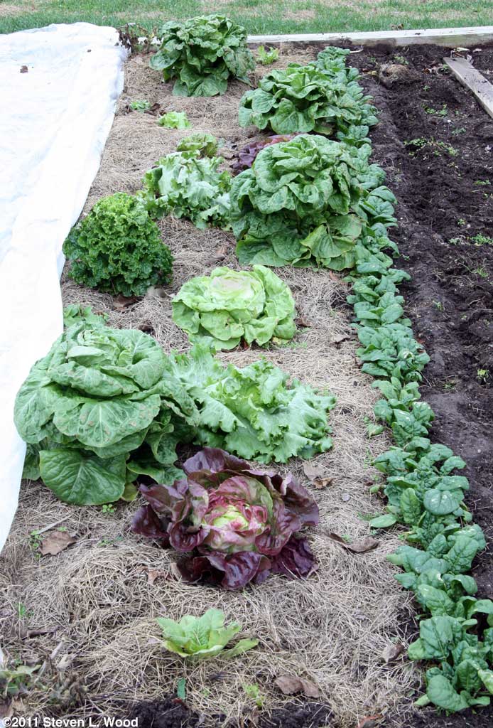 When I looked at my screen of lettuce photos I wanted to show today, I found that our bounty of lettuce was probably more than I could easily fit in on this page. Rather than fuss with how to fit in seven images (six or eight go great in a table, but seven?), I just snapped a screenshot of the photos tiled in Photoshop. While Winter Density and Defender from Johnny's Selected Seeds have been our main types of lettuce for years, we also have a colored blend we tried for the first time two years ago. It produces some deep red plants, along with some really ugly spotted plants...that still taste great. Our other varieties include Barbados, Nancy, Nevada, Crispino, Red Lollo, and Baby Star. Had I taken time to chart what I was planting, I could have labeled the image above with varieties, but...I was in a hurry. Note: The variety links above are to the various vendors' seed catalogs. And nope, not a one of them is a Senior Gardening affiliated advertiser. The links are there in case you might want to try one of the lettuce varieties. I think I'm going to go have a spinach salad now! And that turned into the motivation for a column, What's That in my Salad? I'm writing today's posting in the wee hours of Wednesday morning. As I write, it's raining hard outside, and the temperature is already dropping rapidly from "yesterday's" high of 70o F. I'm tired and a bit sore, but it's a good tired and sore. And with the heavy rain, I can sleep in in the morning without any guilt.