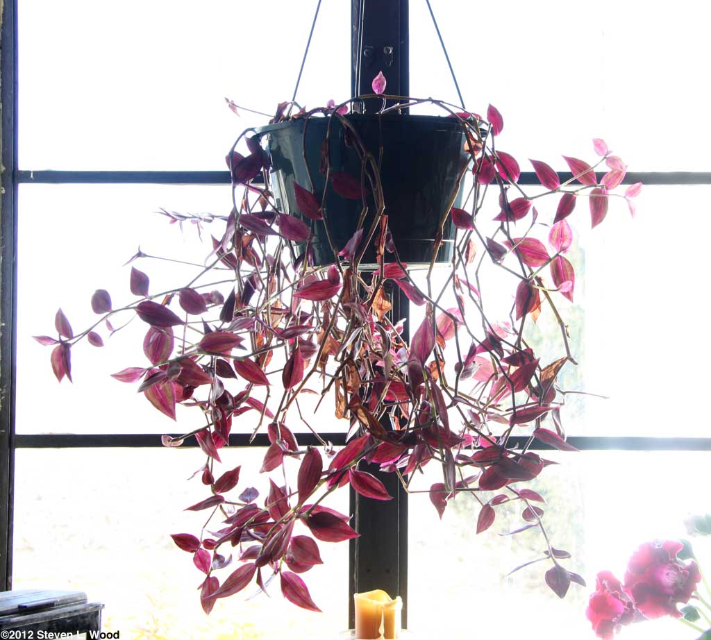 I took the scissors to the plant, trimming the trailing vines to about eighteen inches before taking the whole pot to the shower. I ran warm water over the pot, leaves, and vines for about fifteen minutes and then let the plant sit for half an hour in the humid environment. More time would have been better, but I needed a shower, too! Later in the day after I'd brought the plant back out, hung it, and the afternoon sun was getting around on it, I grabbed a closeup of its leaves. It turned out so well that I added it to my rotation of desktop photos for my computer background and uploaded it to our free Desktop Photos page.