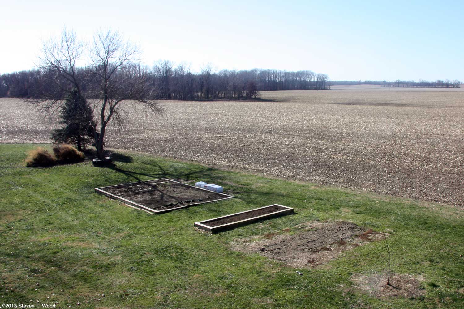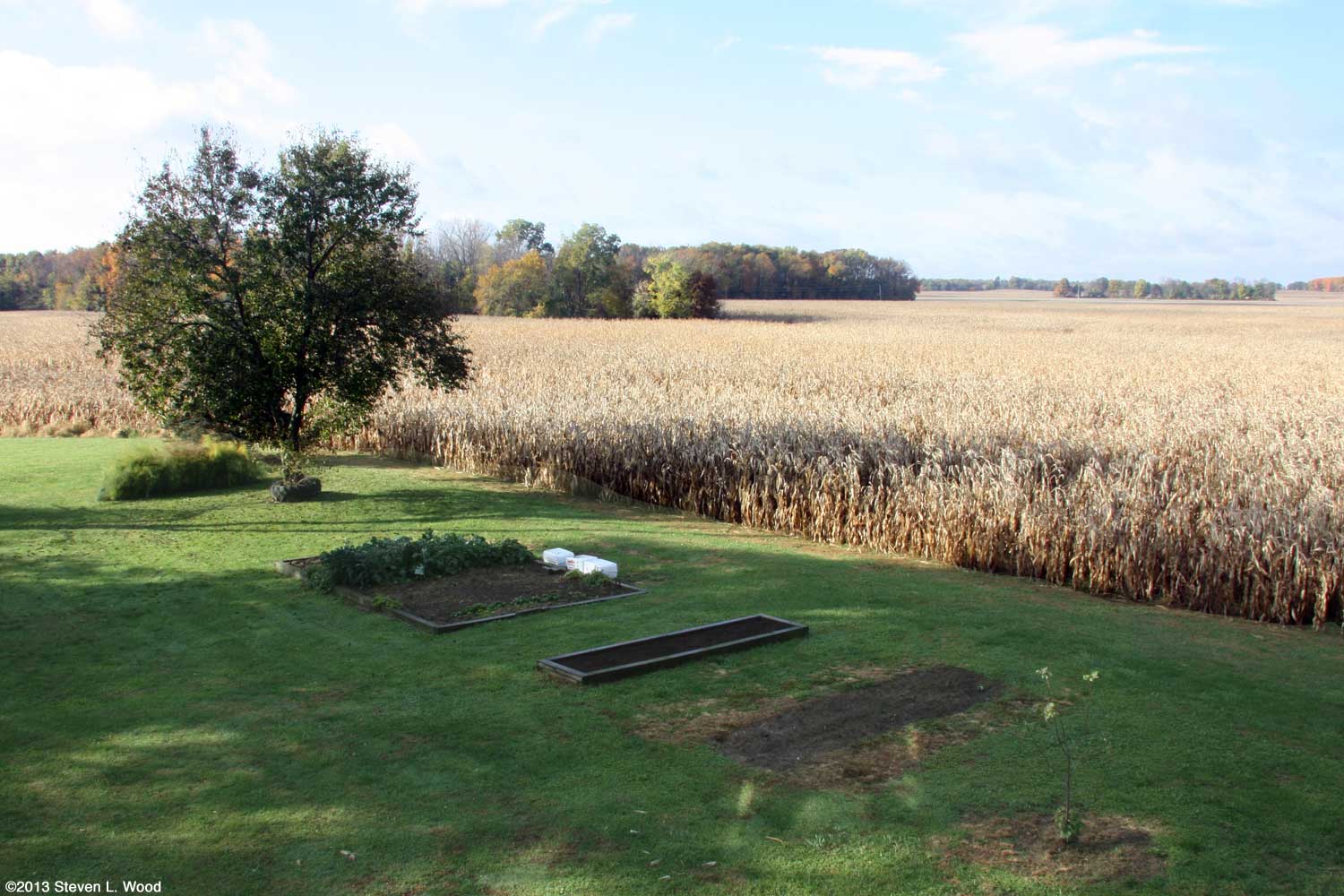 I gave up watching the Colts miserable performance against the Cardinals in the second quarter and went out and pulled all the dead plants. That leaves only a few, rather sad looking, spinach plants in our main raised garden bed. I've saved three large bales of peat moss to work into the northern half of our main raised bed. I'd worked a similar amount of peat moss into the southern half of the bed in July. The peat will improve the organic matter of the soil, making it easier to work and for roots to penetrate. It will also raise the soil level a couple of inches, a need that became obvious last spring when the raised bed flooded in both May and June. Being able to work the area will depend on any more precipitation holding off for a few days and the ground thawing in the afternoons. Flashback As I looked over past postings this evening to nail down when some of the flooding of our main raised bed occurred, I ran across a shot of our main garden that reminds me why I go to all the trouble of gardening. I begin and end each day with a prayer of thanks for the day. Having the time and health to continue doing something productive is an incredible blessing. Views such as the one above are another. Tuesday, November 26, 2013 - Correction (We Keep Learning!) Mike Bryce had written to me earlier this month questioning whether geranium seed had to be started in total darkness. I thought it did, but wasn't certain of my source. When I researched a bit, I only found a few references that backed up my recommendation in our Growing Geraniums from Seed feature story for germinating the seed in total darkness! I wrote Mike as much and had to admit that I really wasn't sure on the issue. Mike wrote a seed supplier and was sent a copy of a geranium growers' guide by Goldsmith Seeds. The guide does not recommend total darkness for germinating geranium seed. In fact, it states that "providing a light source of 10 – 100 foot candles (100 – 1,000 lux) will improve germination and reduce stretch." I tried researching footcandles and ended up with a quick headache. But from one source, it appears that "10 – 100 foot candles" is in the range of normal room lighting, with a hundred footcandles being a pretty bright room. My thanks to Mike for following up and finding the correct information. I didn't find the guide online until late last night, but was really pleased to be able to provide a link to the page. The information came from Goldsmith's Technical Services Library which has fact sheets for many different flower varieties. While intended for professional growers, my experience shows even we home gardeners can learn something useful from such publications. Mike also allowed me to publish some great images of his home, garden, and greenhouse in an April, 2012, posting. Sadly, in the storms that swept through the midwest a week or so ago, Mike "lost the door and several roof panels of the greenhouse." Wednesday, November 27, 2013 - Thanksgivings Past (in the garden)