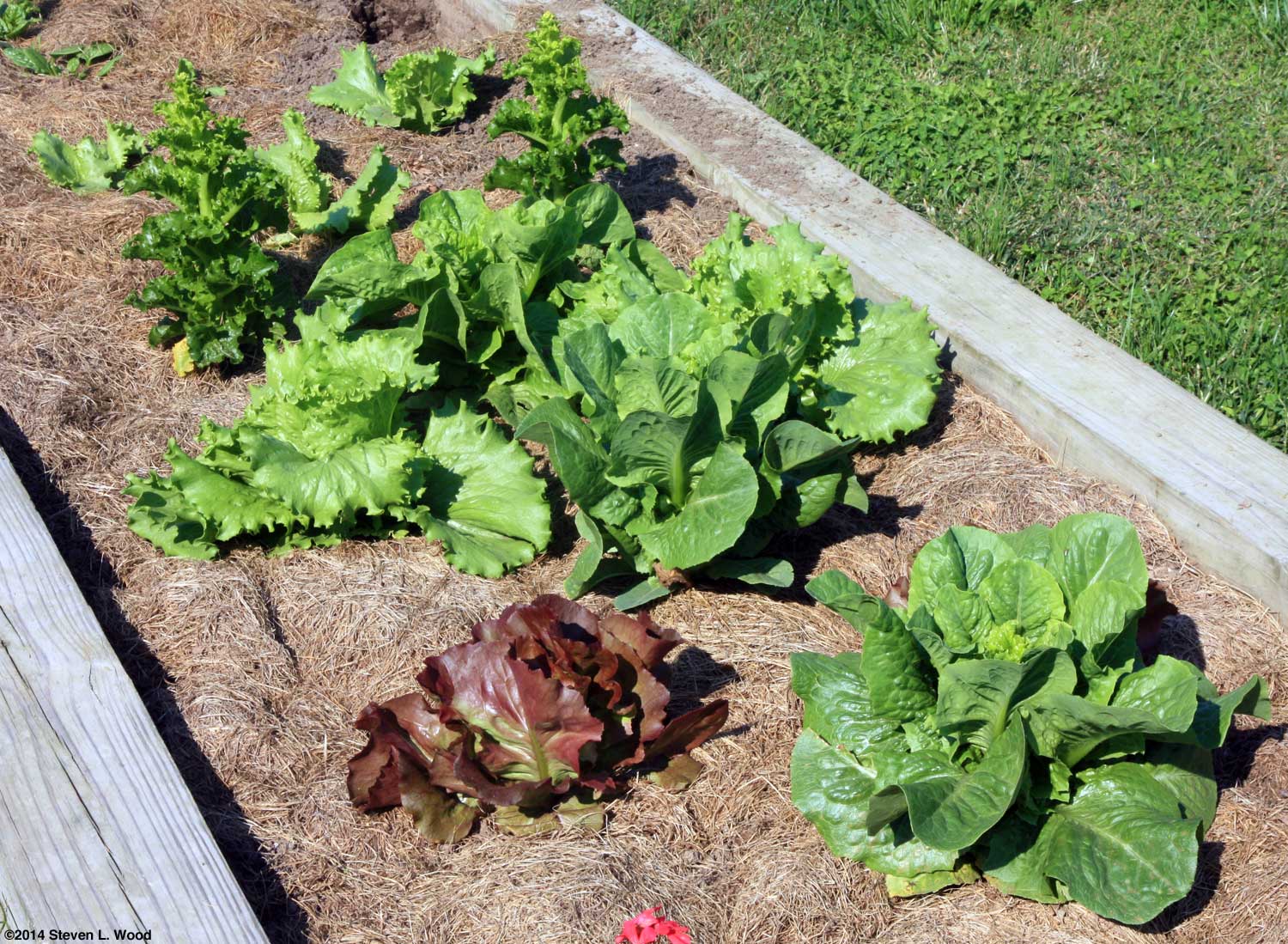 I was going to check one cauliflower plant today, but decided not to when I saw that all of our mulch in that area of the raised bed had decomposed. I was being a bit prissy, but I didn't want to get my shoes muddy! The area had been mulched with a couple of inches of grass clippings three times over the gardening season. All of that mulch has decomposed, enriching the soil a bit. On the downside, raked or swept grass clippings always contain some grass and weed seed which doesn't all decompose. As long as we continue to heavily mulch each year, we won't have a weed problem. Even though we got off to a poor start with some of our fall lettuce bolting in warm weather and the dogs smashing some when it was under a floating row cover, we still have some nice lettuce to pick in the next few weeks.