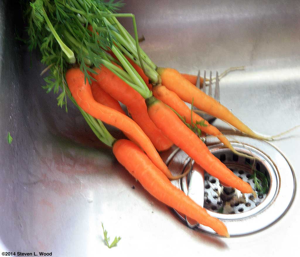 I really didn't dig our carrots. I drove a garden fork into the soil as deeply as possible just outside the carrot row and used it to lift and loosen the soil. The carrots then could be wiggled free from the soil without snapping off.