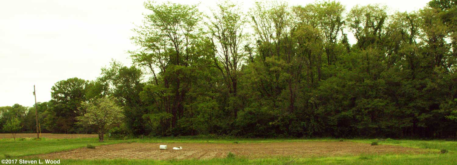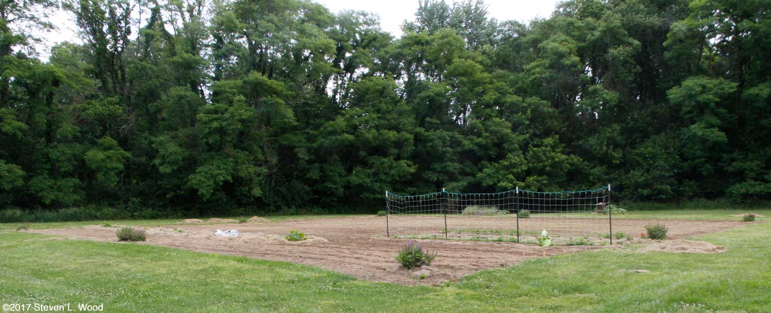 I use welded wire concrete reinforcing mesh (remesh) to make our cages. A good pair of bolt cutters makes cutting the cages fairly easy. Bending the wire into a circle and binding it are a bit more work. I now paint our tomato cages with a coat of Rustoleum to make them last a few years longer. The base of each cage gets a coat of Rustoleum heavy rust primer before the whole cage gets a coat of green Rustoleum. I spray the top wire of the cages with white paint to make them more visible in dim light. I only got six new cages constructed and primed this afternoon before the heat and humidity got to me. While working on the cages, I heard a whine from the cat house inside our garage. When I looked, sure enough, Winston, who is now renamed Winnie, had given birth to four healthy kittens. Winnie showed up in our garage a few months ago. She wasn't feral and loved to be petted. Then she disappeared for about three weeks, only to return with a bulging stomach that indicated either worms or pregnancy. With several dry days in a row, our East Garden dried out enough for me to till it again yesterday. The tilling was necessary, at least for the sweet corn section, to turn in about thirty pounds of 12-12-12 fertilizer. I ended up tilling almost all of the plot we're using this year. In addition, I broadcast five pounds of buckwheat seed on the rotated out part of the East Garden and set the tiller to just stir the seed into the top inch of soil. This morning, I was able to rather quickly seed seven, twenty-five foot rows to sweet corn. After stringing my rows, I used a garden hoe to make a furrow for the seed. I got my first furrows too deep, but compensated by not covering the seed with all that much soil. I wanted the sweet corn seed an inch or so deep.