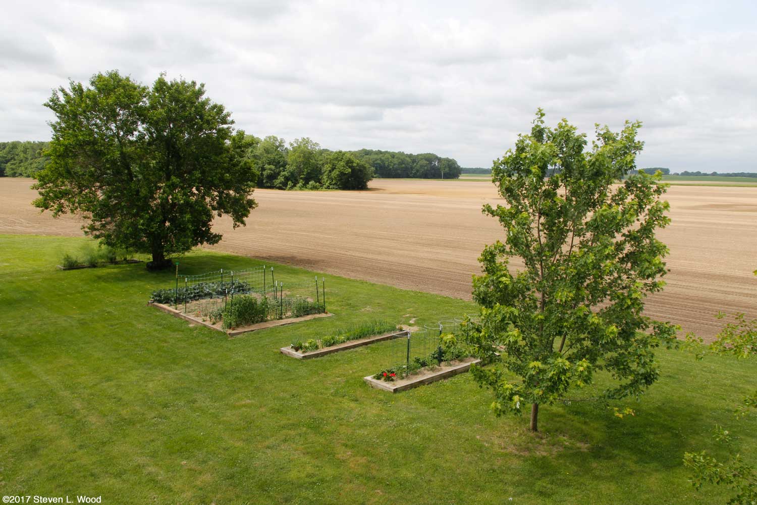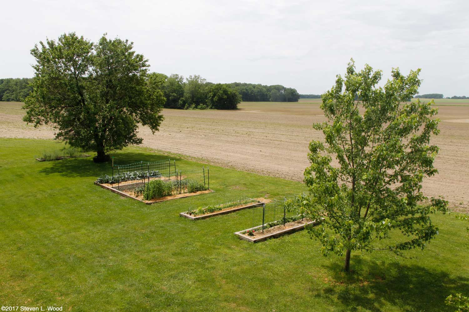 I let three scapes "bloom" several years ago. I tried saving the small bulbils they produce, but didn't have any luck getting them to grow. I did end up getting what turned out to be our best garden photo for 2014. Rain We had another inch of rain overnight. I checked our sweet corn patch this afternoon and was pleased to see that none of our seed had washed up. We've had a tough time getting our late peas going from all the rain. Of course, we're far better off than the poor guy who farms the field next to us. He came in this week and had to chisel plow and replant the entire 90 acres! Related Links: