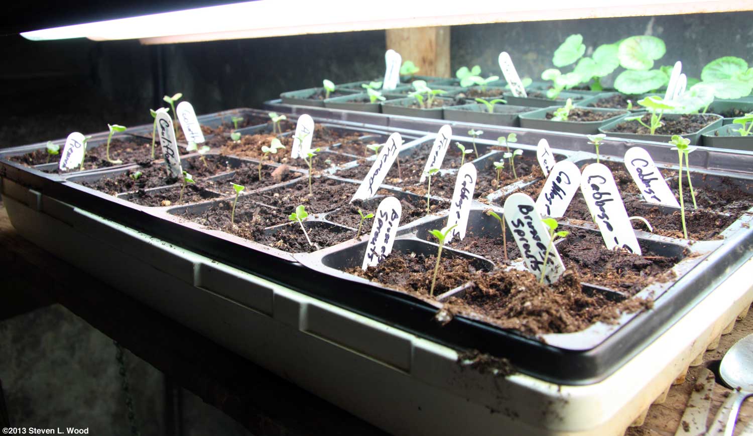 When the broccoli and such come up, I have to be careful to get them fairly close to our plant lights, as brassicas tend to get leggy very quickly if they don't get enough light. I've frequently had to lift broccoli plants from their cell or pot and set them back into the planting medium a bit lower due to tall, spindly stems.