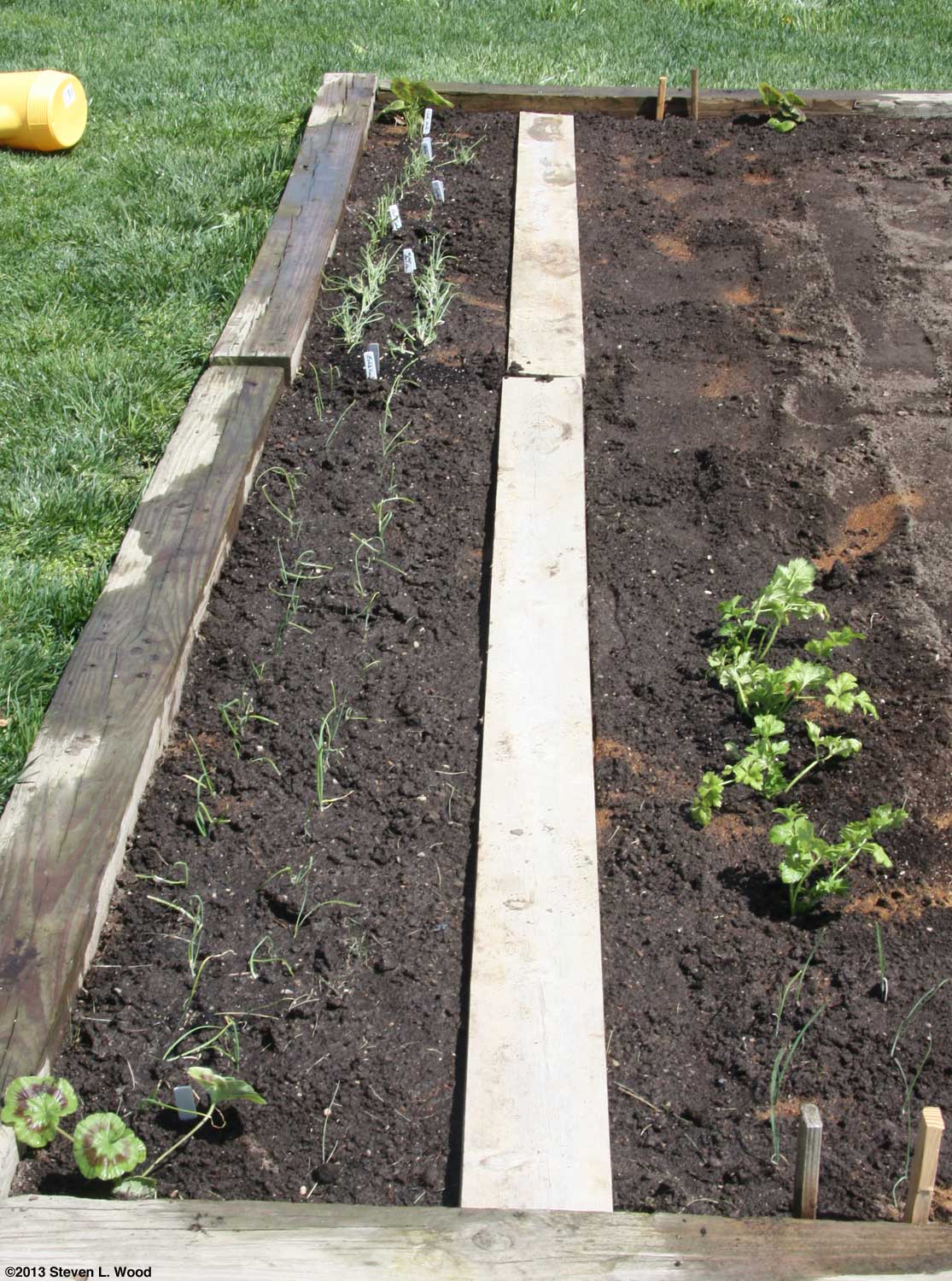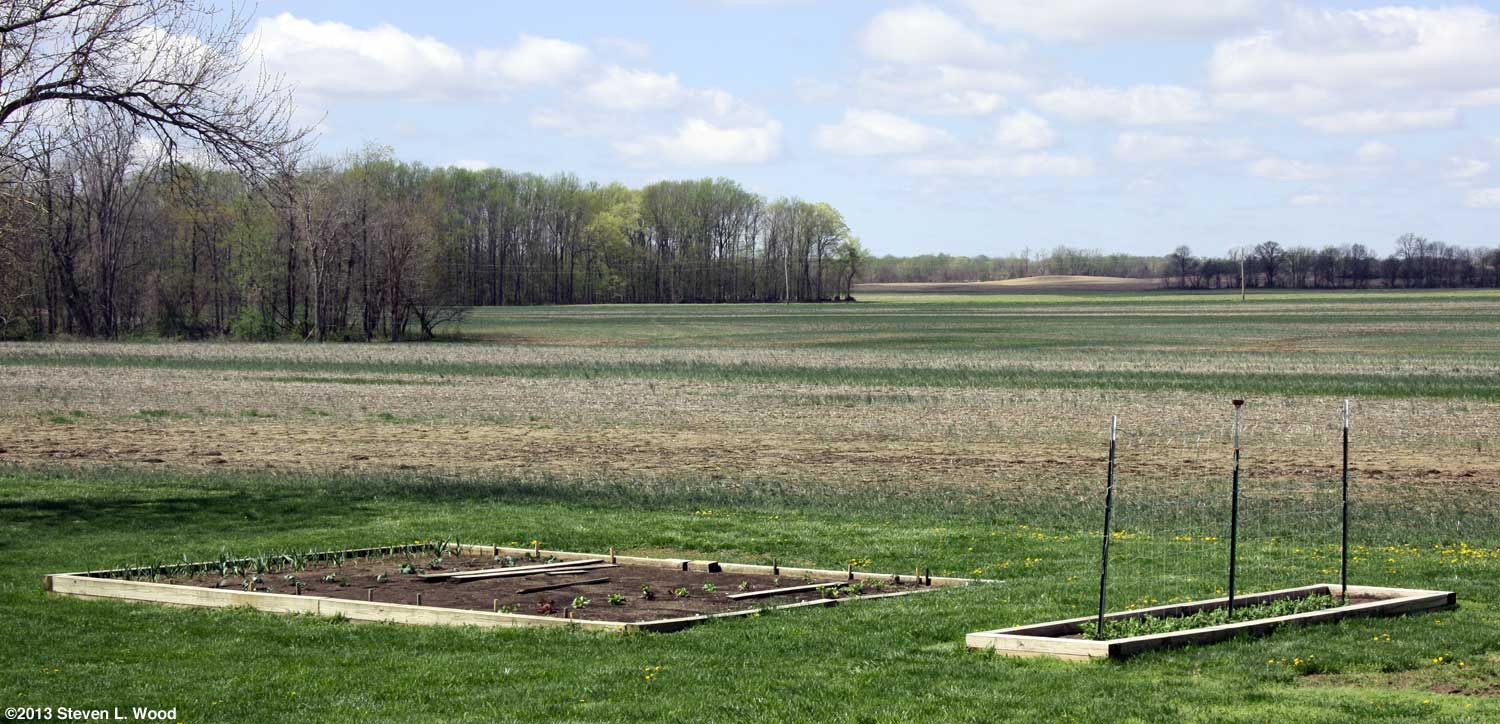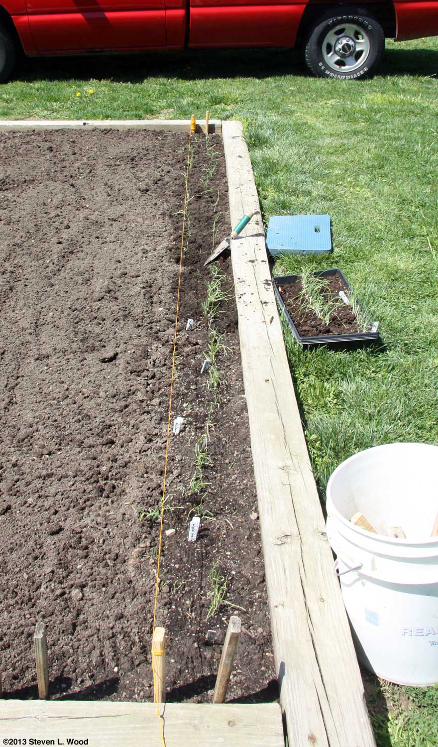 At this point, we had done all the planting we could do in our main raised bed. The center section was reserved for a row of sweet bell pepper plants which couldn't go in until all danger of frost was past. Our average frost free date in this area is around May 1.