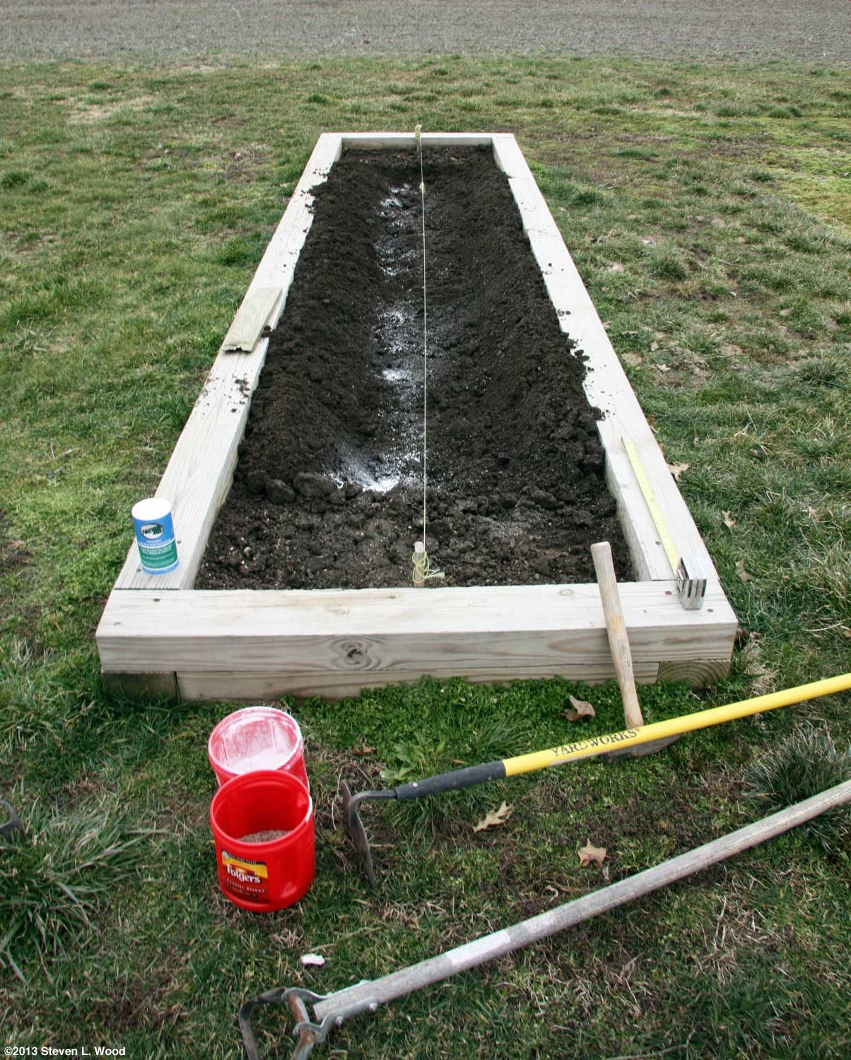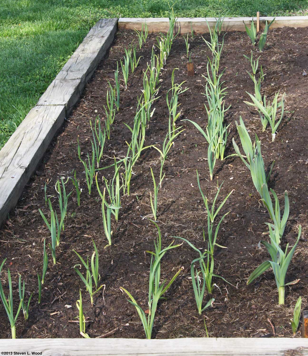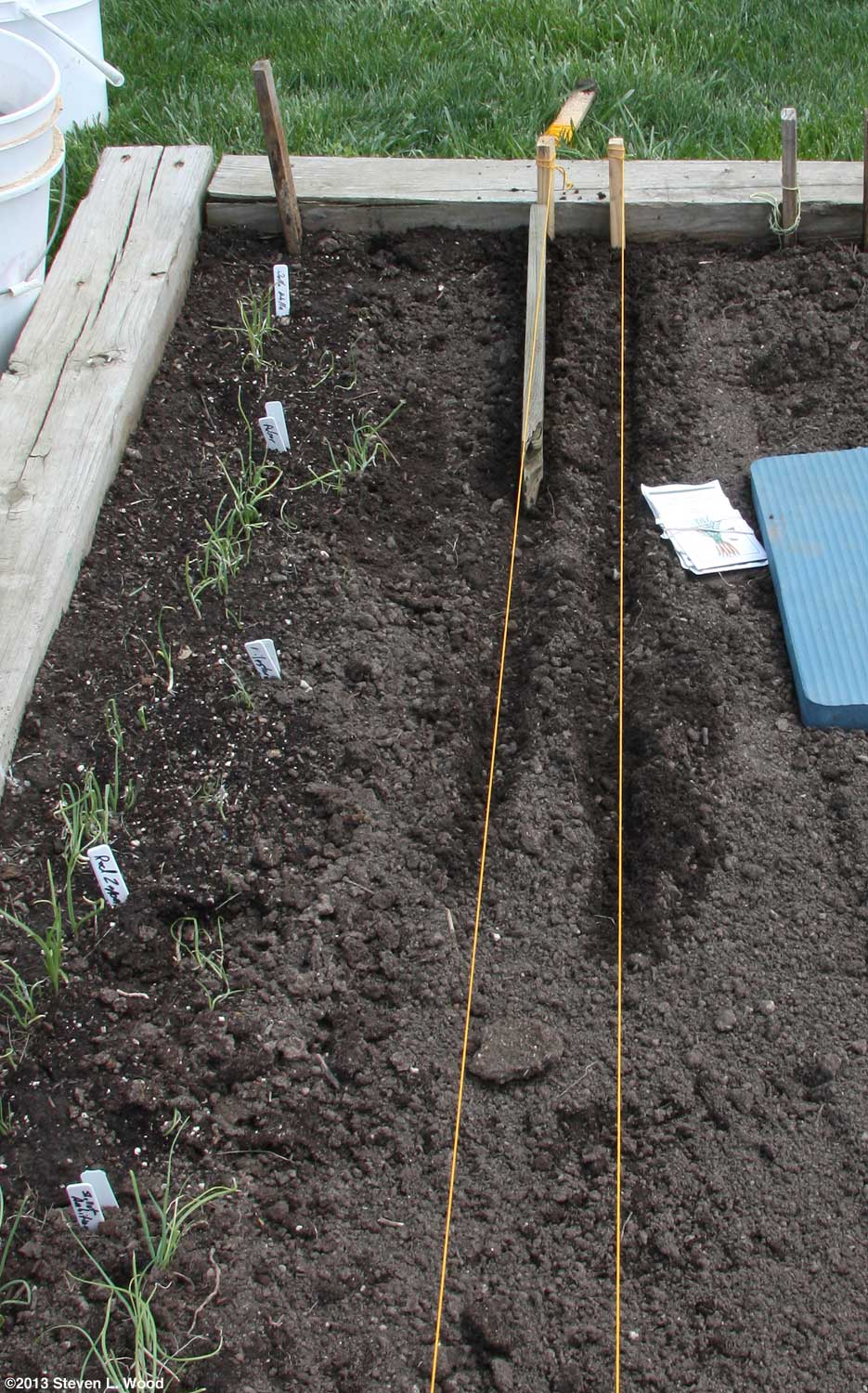 At this point, we had done all the planting we could do in our main raised bed. The center section was reserved for a row of sweet bell pepper plants which couldn't go in until all danger of frost was past. Our average frost free date in this area is around May 1.