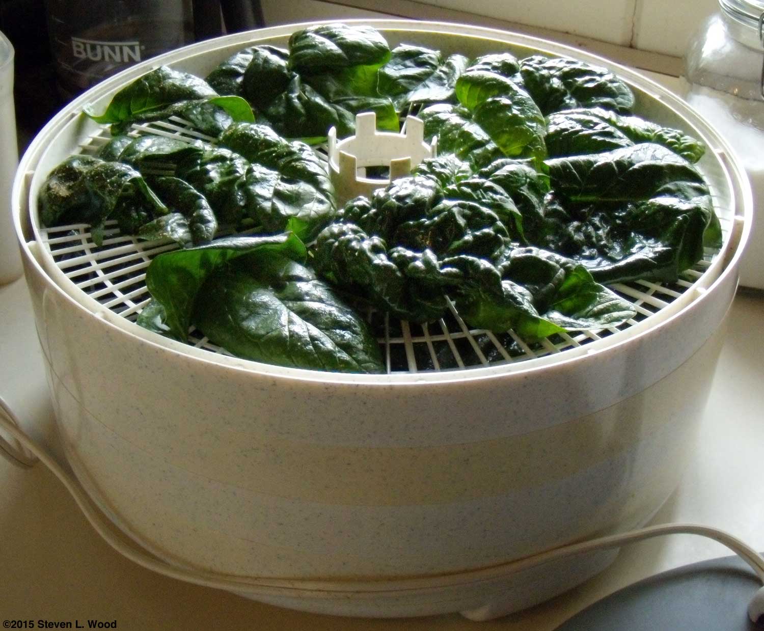 I once started the drying process in the house, and the odor about did us in. Once completely dry, the chips and dried paste got scraped off the trays and were ground in a coffee grinder to make the garlic powder.