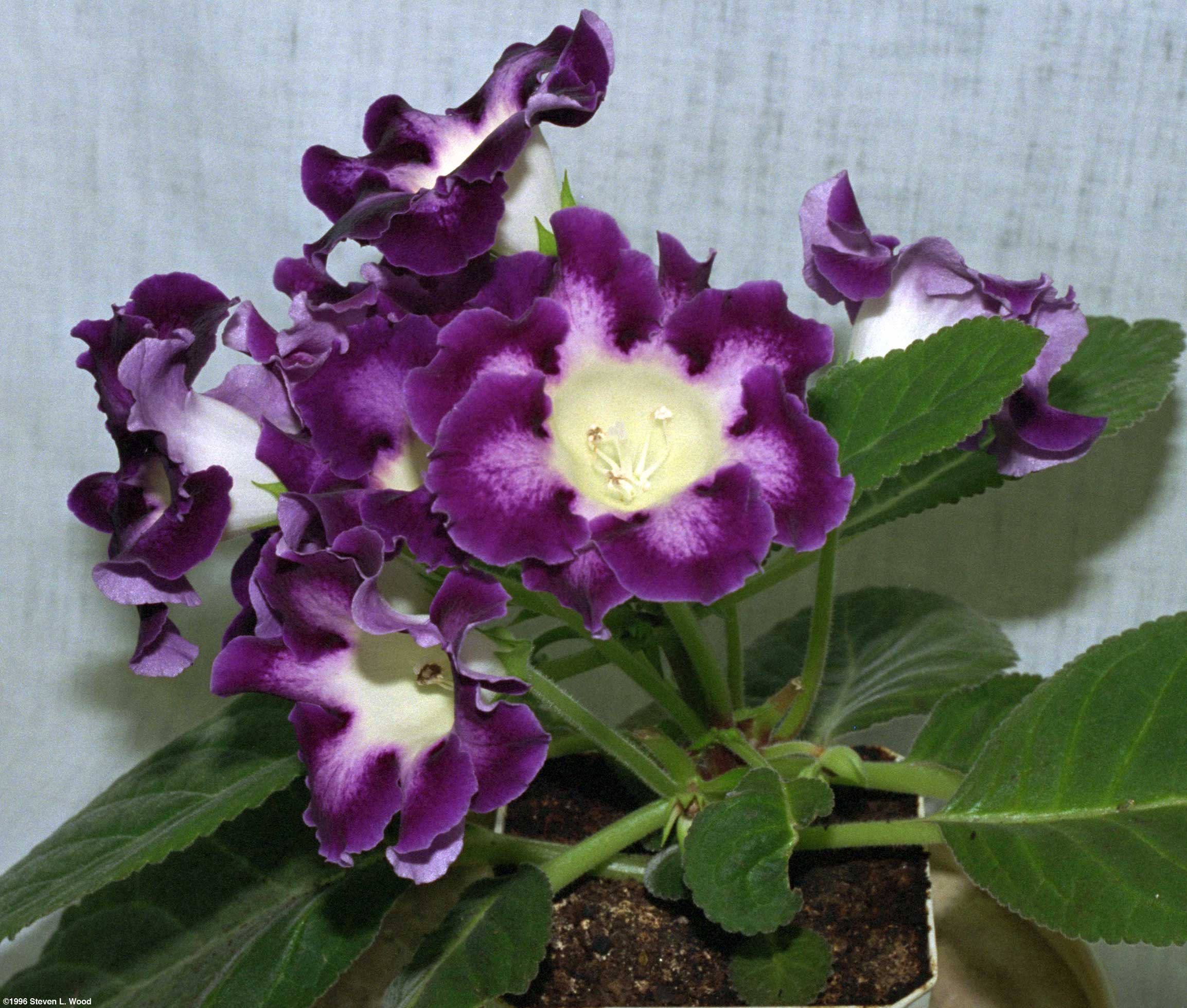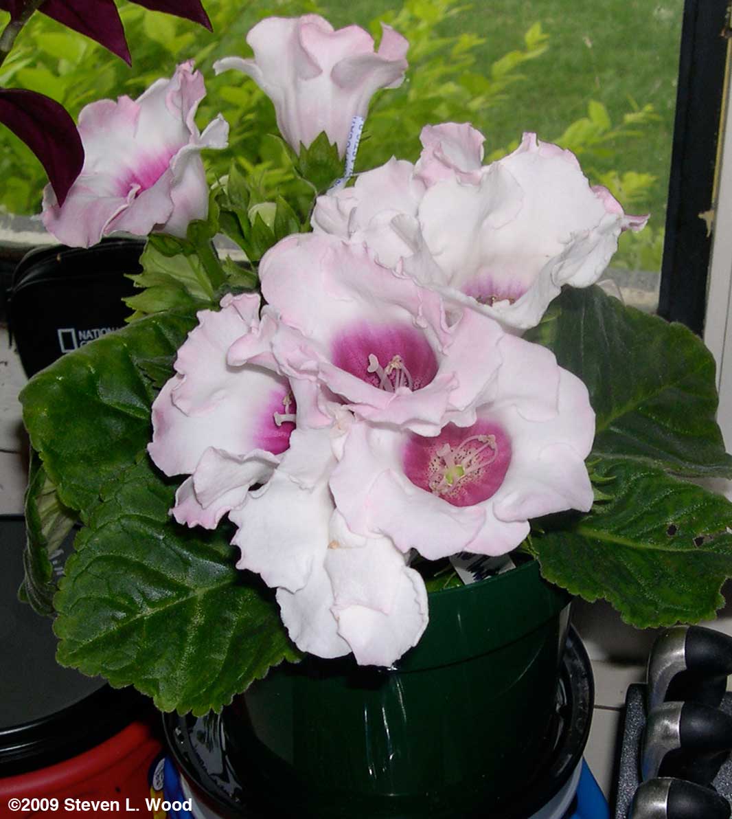Since I'm a writer of sorts, you'll find some commentary about some of the shots and growing conditions interspersed with the pictures. Cultural information on growing gloxinias can be found here and there in my regular blog and in the feature stories, Gloxinias and Saving Gloxinia Seed. Please note that all photos on this page and site are copyrighted, but may be used for desktop photos or classroom use without permission or payment. All other use requires prior consent, massive royalty payments, your left pinkie finger... (Actually, I'm a pretty soft touch on non-commercial use of my photos. Just , please.) Our gloxinia photos go back to 1996 when a couple of my students and I set up a white sheet as a backdrop and grabbed some shots of the plants that adorned our classroom. Over the years, I've edited out the backdrop from some of the photos and also created some nice composite shots. I wonder if the kids still remember our photo day?