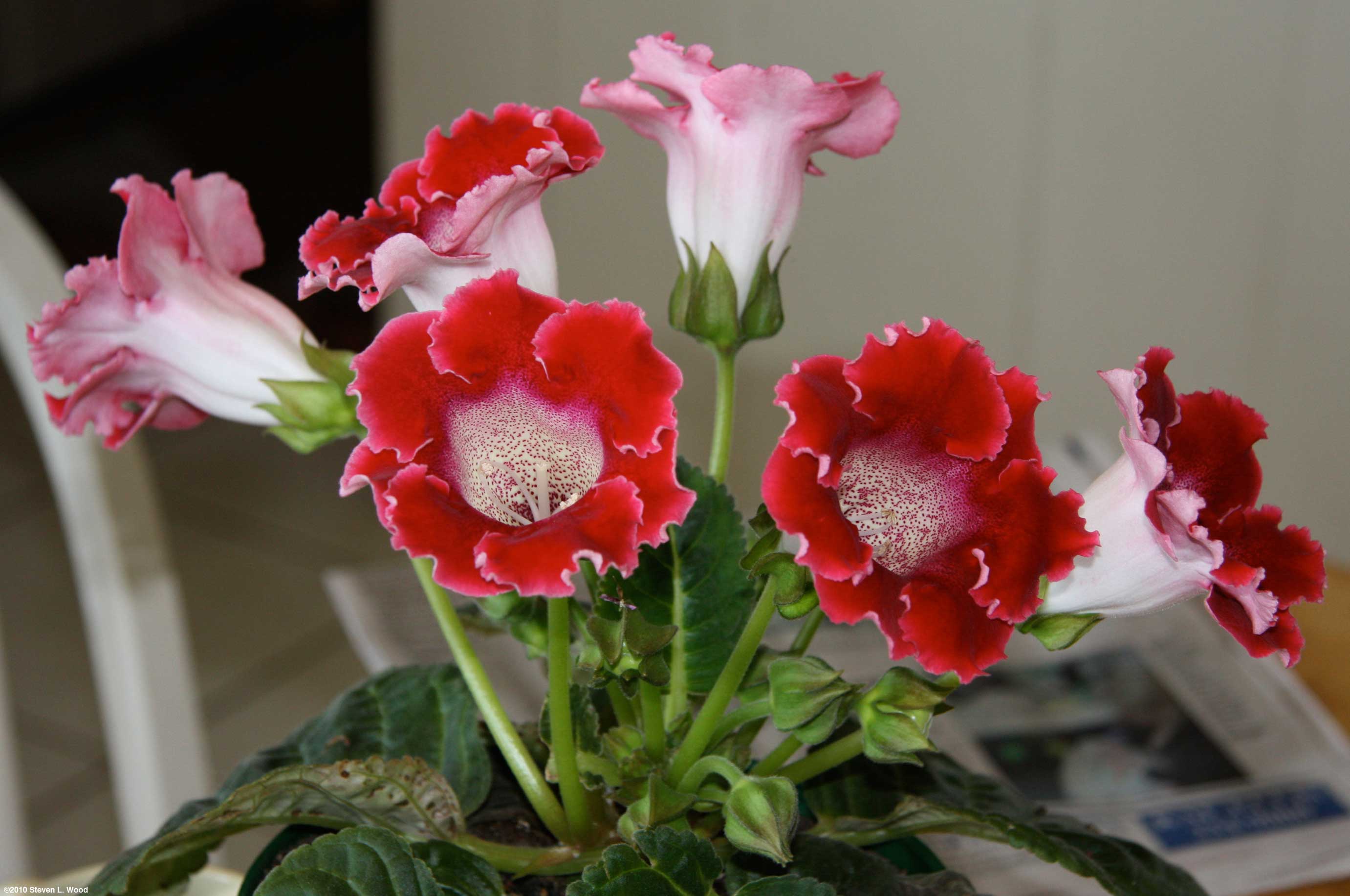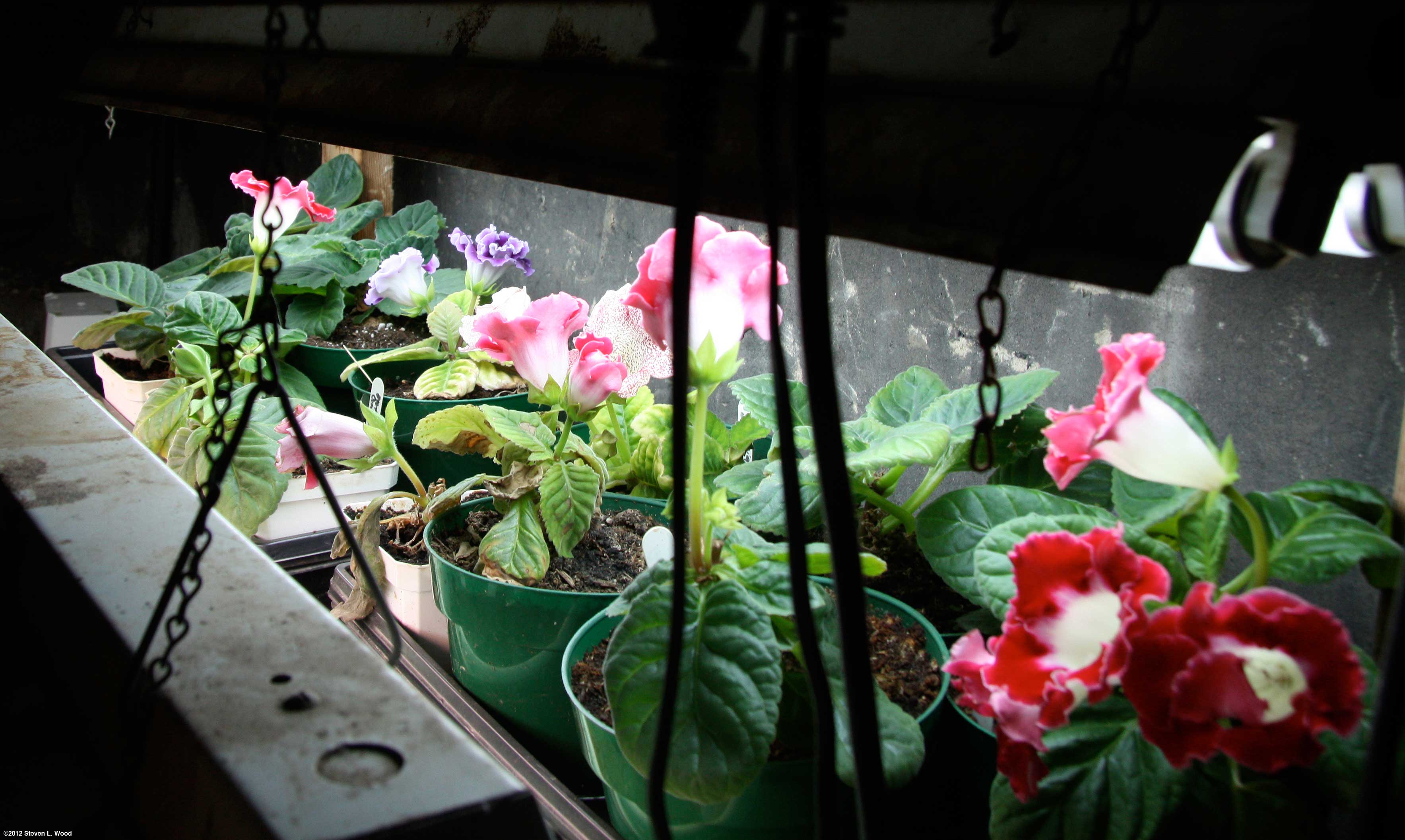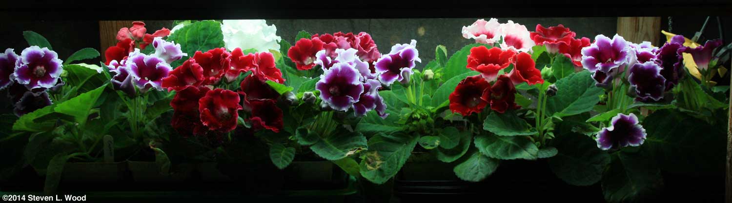 The images in this feature story were captured with a variety of cameras. The initial shots from my classroom were taken with my old Canon AE-1 When it came time to move on to a digital SLR, I chose a Canon Digital Rebel XSi. Once I ditched its kit lens in favor of a Canon EF-S 17-85mm zoom lens, I had the camera I needed to do serious closeups along with all the general garden shots I take. The XSi isn't perfect, as its metering system drives me nuts at times, but it's the best camera I've ever used. And the 17-85 lens is heavy, but since I lugged around a Mimiya RB-67 when doing wedding and portrait photography in my younger days, the bulk of the unit feels pretty good in my hands. Sadly, in the world of electronics, things don't last forever. The 17-85mm lens had an electronics failure and was replaced with Canon's newer version of the lens, a Canon EF-S 15-85mm While it didn't fail, after over 30,000 images the XSi was replaced by a new Canon T5i body. The XSi was overdue for a thorough cleaning and adjustment. While Canon had just released their new T6 series Back to Gloxinias I started growing gloxinias sometime in the late 1970's. I was already growing some of my own garden transplants, so adding flowers under our plant rack wasn't all that big a deal. As the years went on, our gloxinia collection would increase and decline. But partially from my years as a wedding photographer, keeping film, photo paper, and especially the expensive 500-volt dry cell batteries we used in the freezer to preserve them, freezing seed never seemed like all that much trouble. In a bit of a tragedy all of my own making, we lost all of our gloxinia plants in 2007. I then had the experience of starting all over with gloxinias. I had the advantages, of course, of already having a plant rack with lights, lots of seed stored in our manual defrost chest freezer, and some experience in starting and caring for the plants. But having to start over got me back to where folks who are new to growing these lovely plants begin and helped me in writing our Gloxinias and Saving Gloxinia Seed feature stories. The experience was also a sad reminder that one doesn't usually get glorious, florist quality gloxinias with 10-20 center blooms from a first year plant. And I use the expression "florist quality gloxinias" in a historical sense, as I've not found a florist in recent years that sells and delivers gloxinias! That's sad as I think I "discovered" gloxinias from a plant delivered to the hospital when one of our children was born.