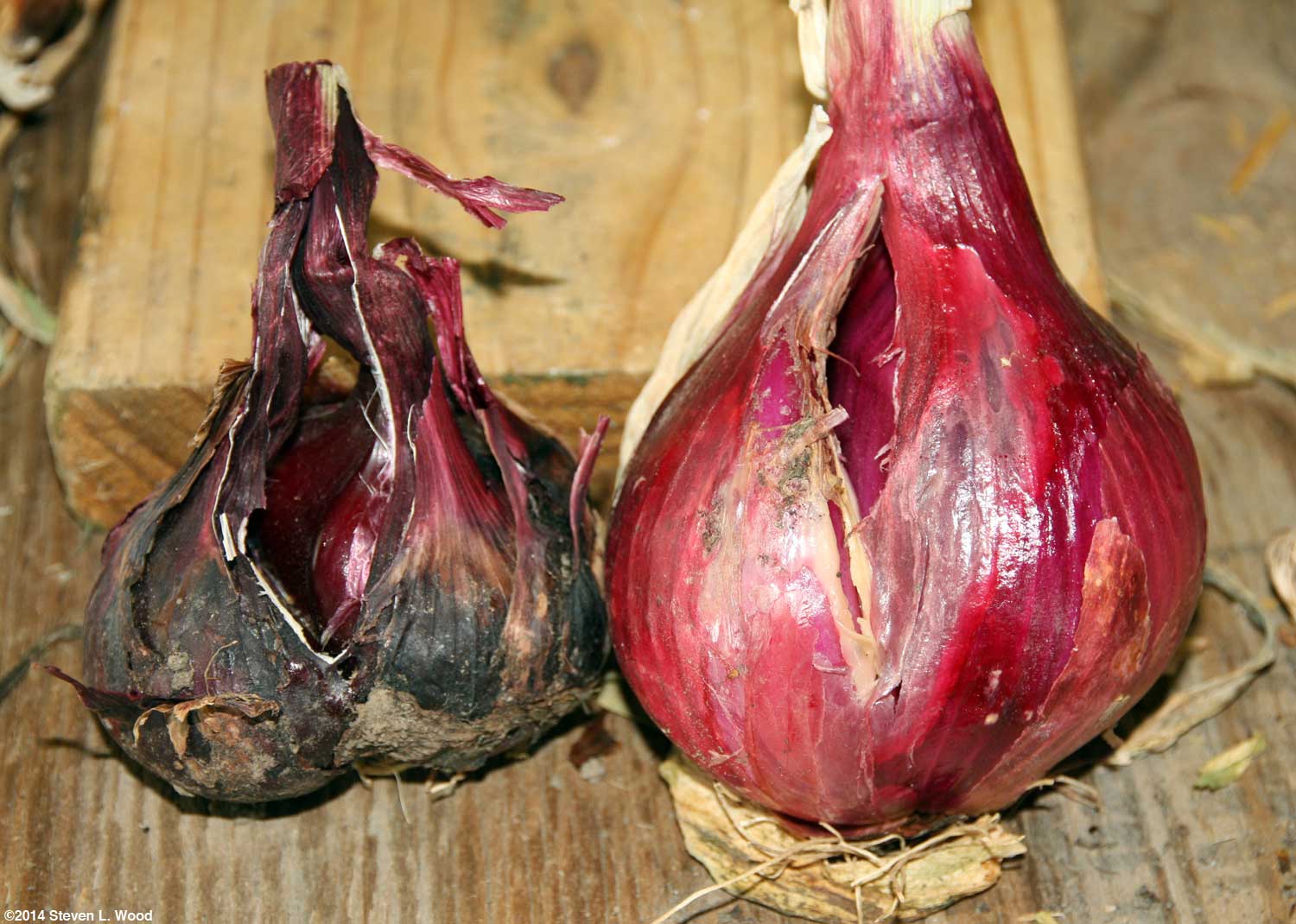 ...Tropeana Tondas also have a tendency to double or split, something that makes such bulbs poor candidates for storage. I almost missed the splits, as Tondas have pretty heavy outer wrappers, and there almost certainly will be splits starting inside the bulbs that I didn't find. While we'll use the splits and even plant a few plants of the variety next year, this isn't a red onion I can see counting on as a long-term storage onion. We'll see how the single onion bulbs store (and taste).