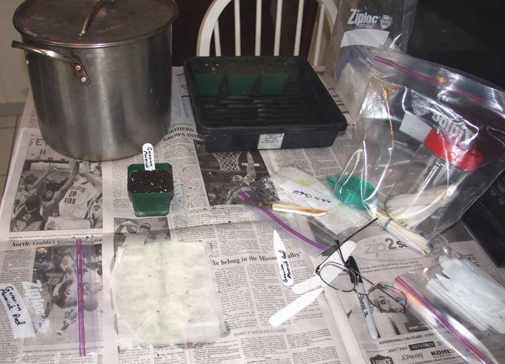 Okay, we're started now. I'll begin checking the seed on paper towels in just a couple of days and moving any germinated seed to individual pots. The seed in soil should begin to germinate in about five days.