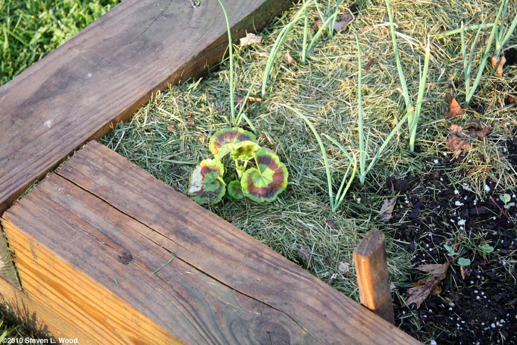You may have some good cold frame, hot bed plans sitting on your gardening bookshelf already. Crockett's Victory Garden by the late James Underwood Crockett does a pretty thorough treatment of them in its first chapter. While long out of print, it's still available used at many outlets for a fairly reasonable price if you don't already have it. And after all these years, I find it's still my best gardening reference book. April 22, 2010 Even though our frost free date is somewhere in the May 1-10 area, I've begun setting some of our geraniums out into the garden. Since we were late getting our geraniums started, or rather, re-started, I didn't bother to move the plants from their 3" square pots to 4" square pots as I usually do.