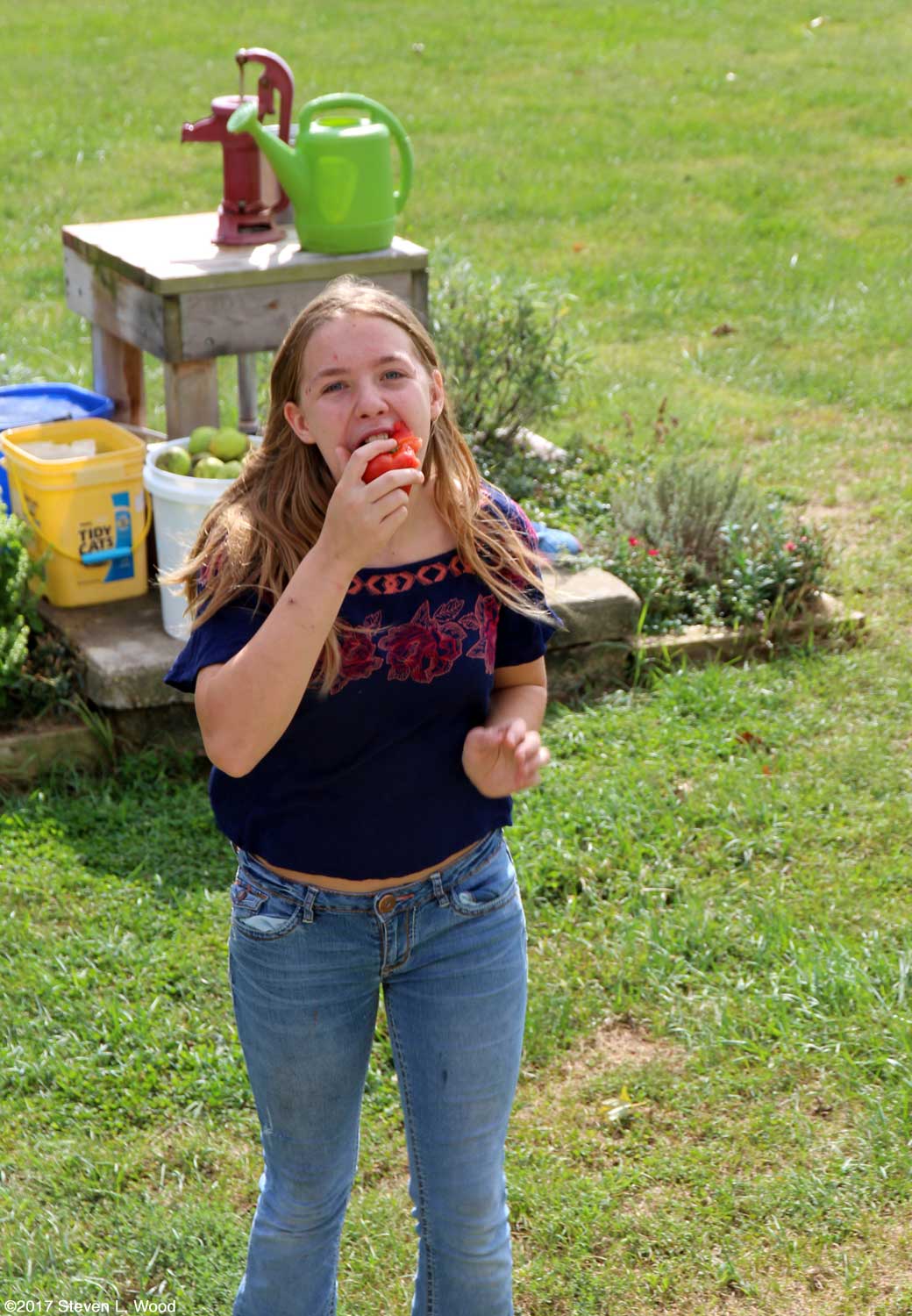 I used to plant a grape tomato plant or two at the edge of our garden plots for grandkids to feast upon. When our oldest granddaughter moved on to preferring whole tomatoes, I quit growing grape tomatoes for a few years. The volunteer grape tomatoes we got from our asparagus patch in 2016 convinced me that I really like the sweet little tomatoes and needed to start putting a few out each season, even if our granddaughter is now too old to enjoy them. Walking by, picking, and eating a sweet grape tomato off a plant is a true summer treat. Tomatoes also come in many colors. While red tomatoes are the most common, there are also yellow, pink, black(ish), and multi-colored tomato varieties. Looking through product photos of some heirloom seed sites can almost overwhelm one with the different kinds of tomatoes. Determinate, Semi-Determinate, and Indeterminate Tomato Plants Tomato plants are often described in seed catalogs as either determinate or indeterminates. To confuse things a bit more, there are semi-determinate varieties. Determinate tomato plants, also known as bedding or bush tomatoes, put on lush growth pushing towards a single, concentrated heavy harvest. For commercial growers, such plants are ideal for a compressed picking time before shipping to market or a canner. Determinates generally put on more compact growth than indeterminates and can easily be grown on the ground (over mulch usually). Indeterminate tomato plants put on lots of growth, making them great candidates for staking or caging. Some varieties will grow to five to six feet tall in a normal growing season. Most of today's hybrids are indeterminates. When staked, they may require suckering, removing small new growth at the axes of plant stems and branches to redirect the plant's energy into developing tomatoes. Semi-determinate tomato plants have some characteristics of both determinates and indeterminates. The plants put on an initial concentration of tomatoes ripening fairly close together, but often will continue producing good fruit throughout a growing season. Semi-determinates usually aren't as tall as indeterminates (although ours often fill and somewhat overflow our five foot tall tomato cages by fall). Beyond the determinate and indeterminate classifications of tomatoes, the plants also come in regular and potato leaved varieties. That one isn't a real biggie, as you just grow what you like and grows well for you. Other I'm going to leave out tricks for getting really early tomatoes, other than recommending early varieties. One can blow a lot of bucks on devices to get that first, earliest tomato on the block. I will give you a link on how we save open pollinated tomato seed from year-to-year. Most of our best tomatoes each year come from open pollinated plants we've saved seed from and have adapted to our growing conditions over the years. Me writing about how to grow tomatoes seems to me to be a bit presumptuous and arrogant. There are so many ways to grow good tomatoes that I've pretty much restricted this story to how we grow them. And I'm still working on this page. I still need to capture a few more images. And, there seems to be so much more that needs to be added. But at least, I've covered the basics. I'm a retired, old guy with absolutely no degrees in agriculture, horticulture, or any other special training. At 75 years old, I've grown great tomatoes for many years, but am still happily learning, so there could be tragic errors in the information above. It's just what has worked for us. I hope this piece adds to your joy in growing and consuming great tomatoes.