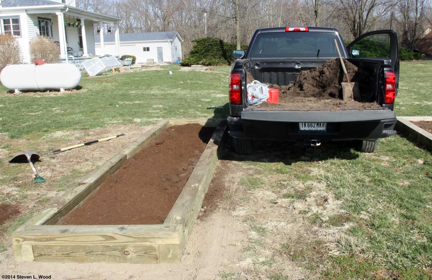 What We Work With Our garden plots, and we have many, large and small, are all compromises of necessary conditions. Our main raised bed is shaded in the early morning, especially in the fall. It's also subject to strong winds that sweep across the open fields to the west of us. It originally was subject to a good bit of soil erosion because of its slope. Terracing it on two sides eliminated the erosion problem. I eventually fully enclosed the plot with landscape timbers, making it a true, if rather large (16' x 24'), raised bed. I later added three narrow raised beds that are much easier to work from the sides.