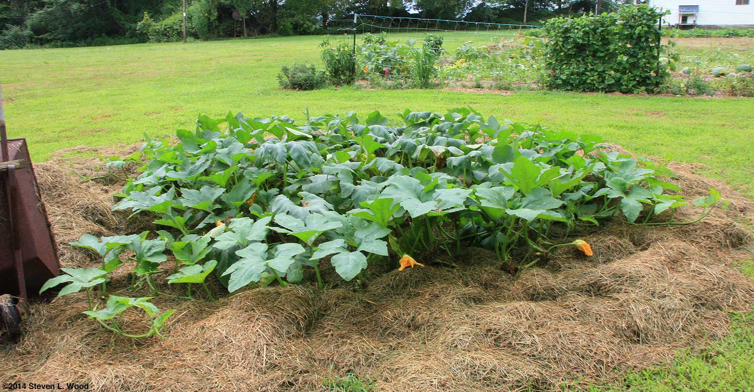 But since we like butternuts and having pumpkins for the grandkids, we hit upon the idea of planting them on the sites of previous years' compost piles outside our East Garden. Despite being heavily shaded all morning, we get lots of butternuts and just enough pumpkins to please our grandkids at Halloween. Links
