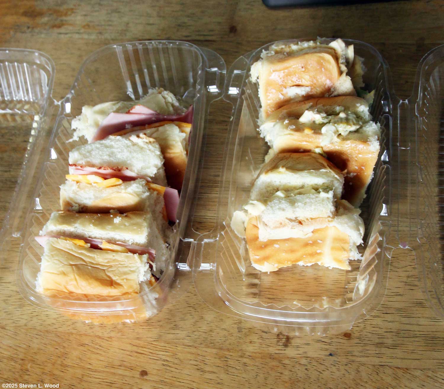 But…we now make our own mini-sandwiches using King’s Hawaiian Sweet Rolls, thin sliced deli ham, and our own homemade chicken salad. Annie likes my chicken salad a little better than Baeslers. While the grocery's deli gets five sandwiches in a container, I can only fit four of them in. I guess that I'm filling the rolls with a bit more goodie than the store. Supper