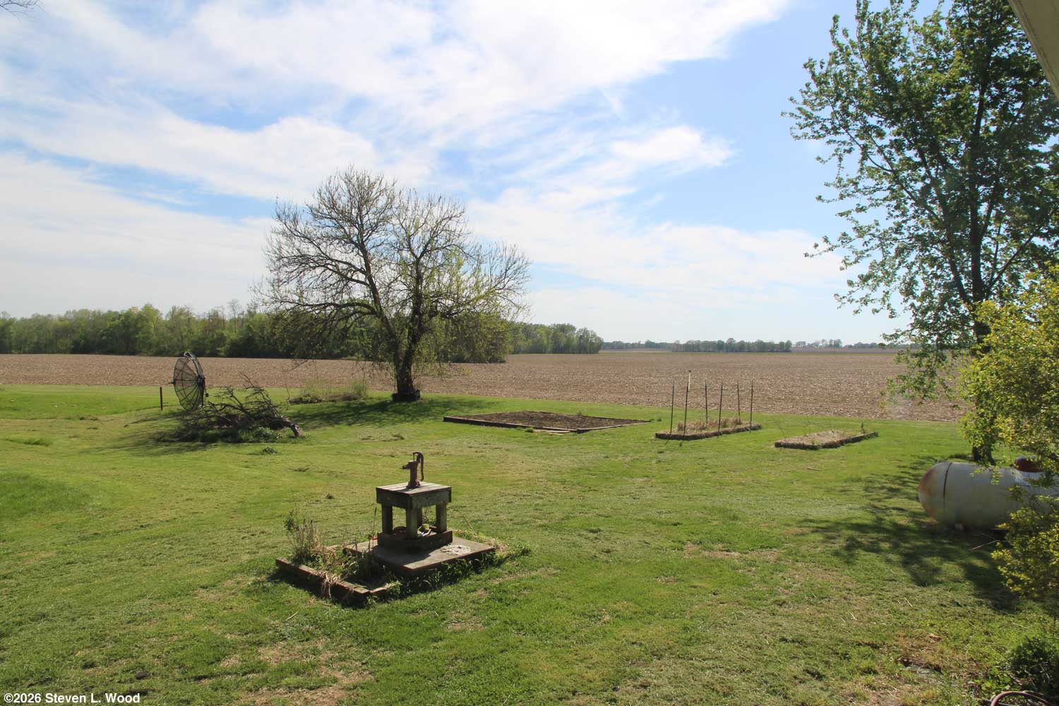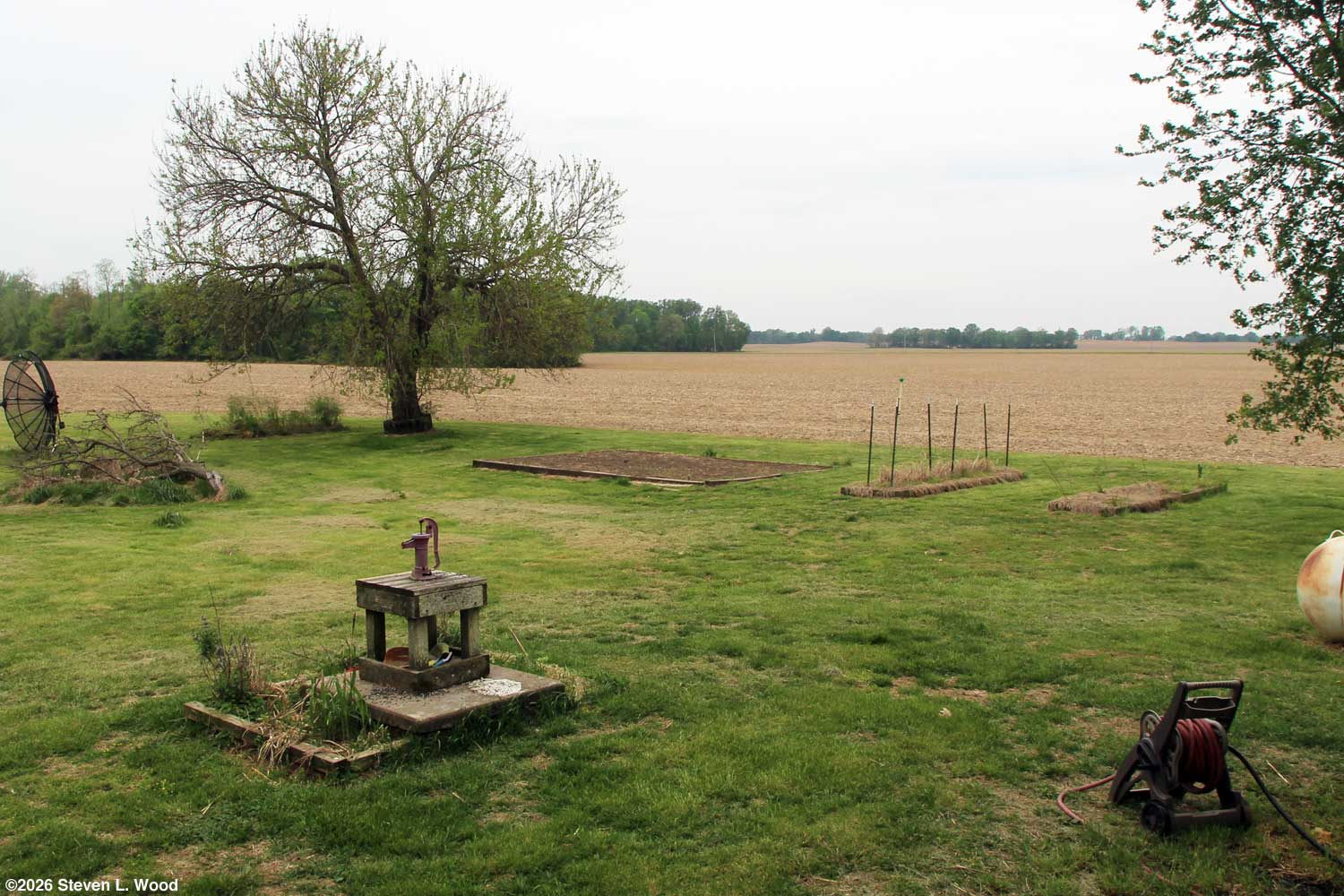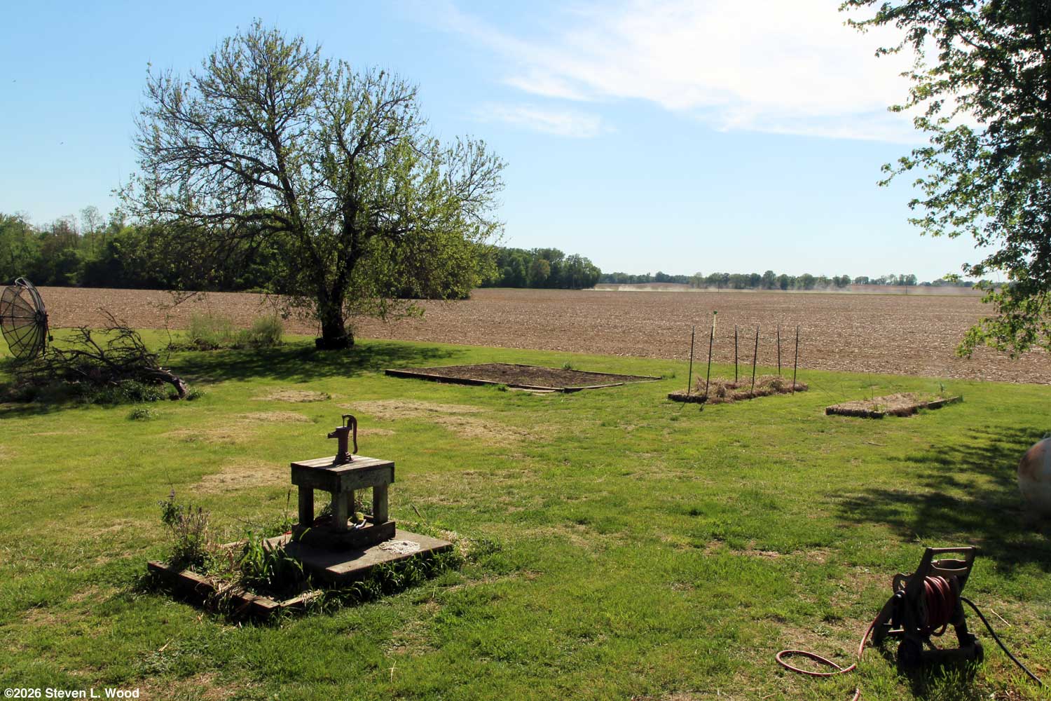 Wednesday, April 15, 2026 - Tax Day Tilling on Monday did some evil things to my body, so I backed off plans to till again. Instead, I raked out the soil on the end of our main raised bed and used a rake to create a fourteen inch wide and two inch deep furrow. I then drug out our hose and thoroughly watered the furrow. We’ve had droughty conditions all winter and spring. Even with some rain predicted in the next week, the soil needed a drink. I also soaked my pea seed for an hour or so. I’ve found soaking pea seed too long makes the seed only fit for split pea soup! I used all of our saved Champion of England and Maxigolt seed from 2023, 2024, and 2025 for the planting. While we’re now out of saved early pea seed, the two varieties are still commercially available. After sprinkling the wet pea seed down the row, I raked and inch or so of soil over the seed. Then I used the rake head to tamp down the soil over the seed. This is about the latest I've planted our "early" peas. How good they'll taste maturing in hot weather is a worry. If they are bitter, I'll just take the peas as a seed crop. Our how-to on growing peas: Another Garden Delicacy: Homegrown Peas. I got our thirty plus year old MTD rototiller started this afternoon. I went after our main raised garden bed. I worked especially on the ends of the 24’ x 16’ bed. Peas will go on one end, while onions, carrots, and beets will go on the other end. The pea end got the last of my can of granular soil inoculant. (Wow! That stuff has gotten really expensive!) The other end got a good covering of Muriate of Potash (0-0-60), a rather hot fertilizer for the carrots, beets, and onions. The bed will require one more tilling before it is planting ready. For once, our weather outlook is cooperating. Yesterday, I began bringing some of our transplants outside to harden off. A tray of onions, two trays of geraniums, and a tray of parsley plants now line our back porch. I’ve been working on getting our grass mowed. Because the grass is high and I’m old, the first mow has taken three days! The first day of mowing was a fight to keep my hat on in the strong winds. I went through a ball cap, a bucket hat with a drawstring, before I found one with good drawstrings to keep it on. Each day’s mowing was limited by pain in my shoulders. When I really began to hurt, I quit mowing, took some aspirin, and had a drink of scotch whiskey. But it's done...for now. In a week, it will be mowing time again.