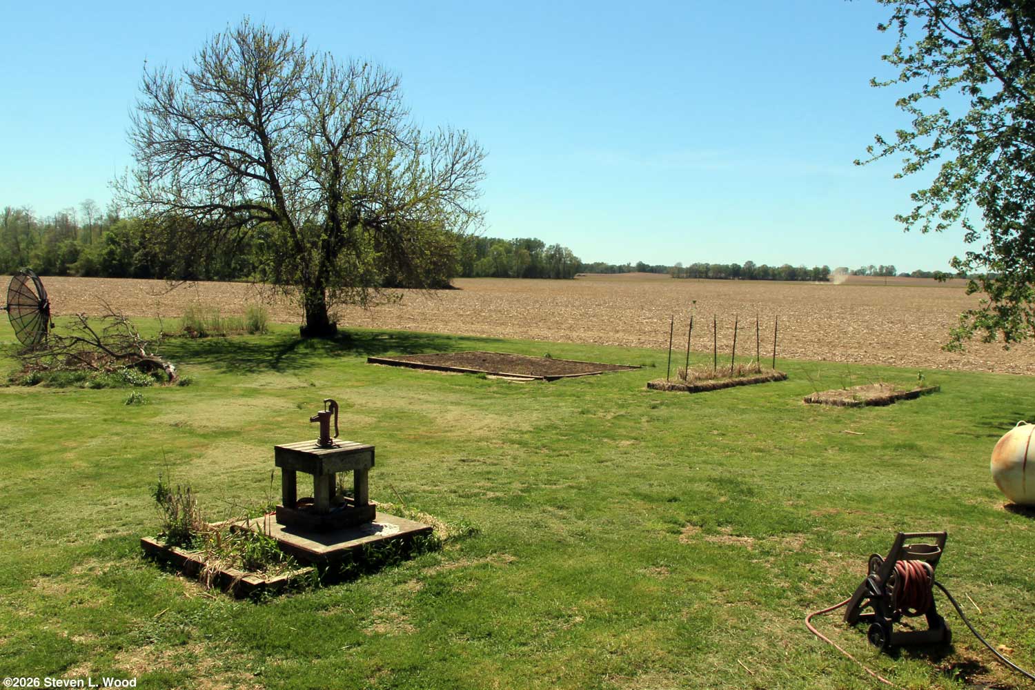 Wednesday, April 15, 2026 - Tax Day Tilling on Monday did some evil things to my body, so I backed off plans to till again. Instead, I raked out the soil on the end of our main raised bed and used a rake to create a fourteen inch wide and two inch deep furrow. I then drug out our hose and thoroughly watered the furrow. We’ve had droughty conditions all winter and spring. Even with some rain predicted in the next week, the soil needed a drink. I also soaked my pea seed for an hour or so. I’ve found soaking pea seed too long makes the seed only fit for split pea soup! I used all of our saved Champion of England and Maxigolt seed from 2023, 2024, and 2025 for the planting. While we’re now out of saved early pea seed, the two varieties are still commercially available. After sprinkling the wet pea seed down the row, I raked and inch or so of soil over the seed. Then I used the rake head to tamp down the soil over the seed. This is about the latest I've planted our "early" peas. How good they'll taste maturing in hot weather is a worry. If they are bitter, I'll just take the peas as a seed crop. Our how-to on growing peas: Another Garden Delicacy: Homegrown Peas. I got our thirty plus year old MTD rototiller started this afternoon. I went after our main raised garden bed. I worked especially on the ends of the 24’ x 16’ bed. Peas will go on one end, while onions, carrots, and beets will go on the other end. The pea end got the last of my can of granular soil inoculant. (Wow! That stuff has gotten really expensive!) The other end got a good covering of Muriate of Potash (0-0-60), a rather hot fertilizer for the carrots, beets, and onions. The bed will require one more tilling before it is planting ready. For once, our weather outlook is cooperating. Yesterday, I began bringing some of our transplants outside to harden off. A tray of onions, two trays of geraniums, and a tray of parsley plants now line our back porch. I’ve been working on getting our grass mowed. Because the grass is high and I’m old, the first mow has taken three days! The first day of mowing was a fight to keep my hat on in the strong winds. I went through a ball cap, a bucket hat with a drawstring, before I found one with good drawstrings to keep it on. Each day’s mowing was limited by pain in my shoulders. When I really began to hurt, I quit mowing, took some aspirin, and had a drink of scotch whiskey. But it's done...for now. In a week, it will be mowing time again.