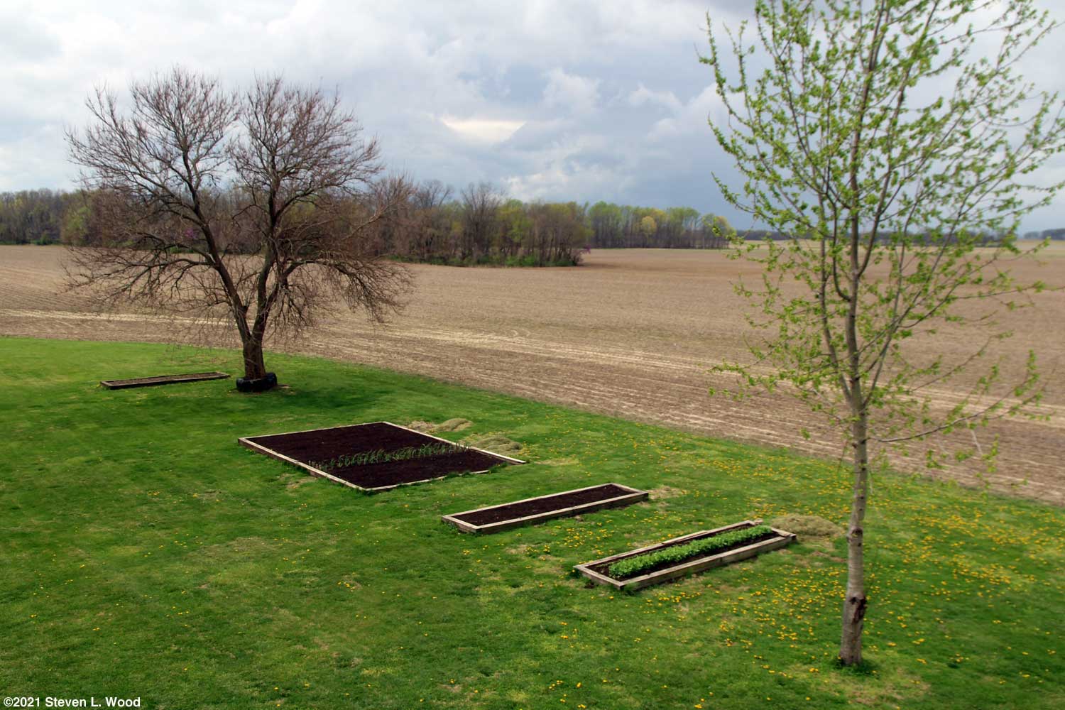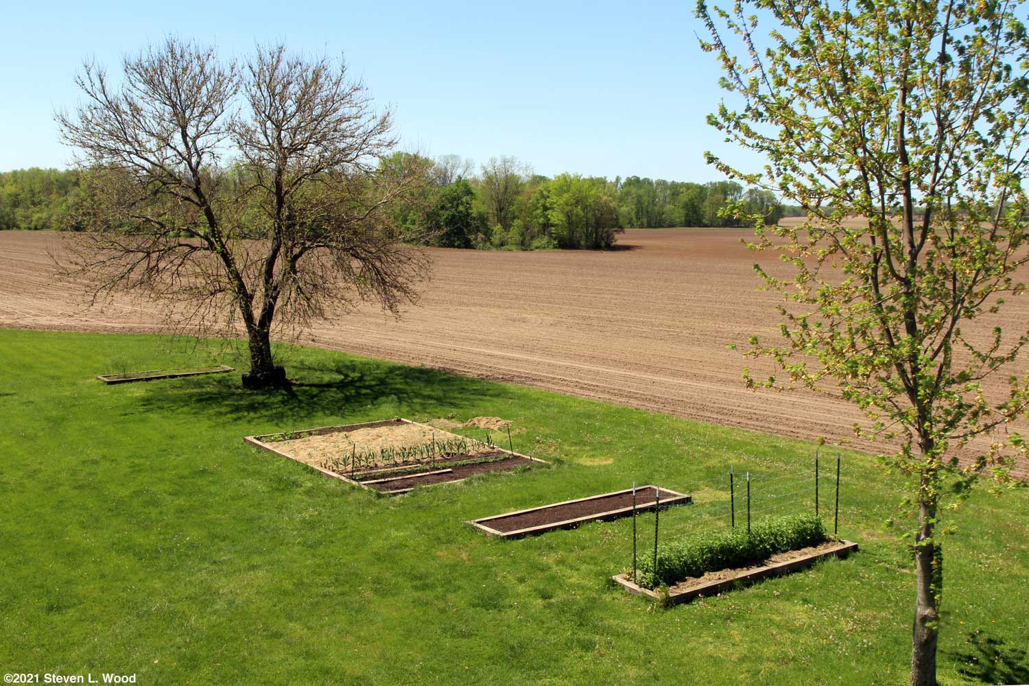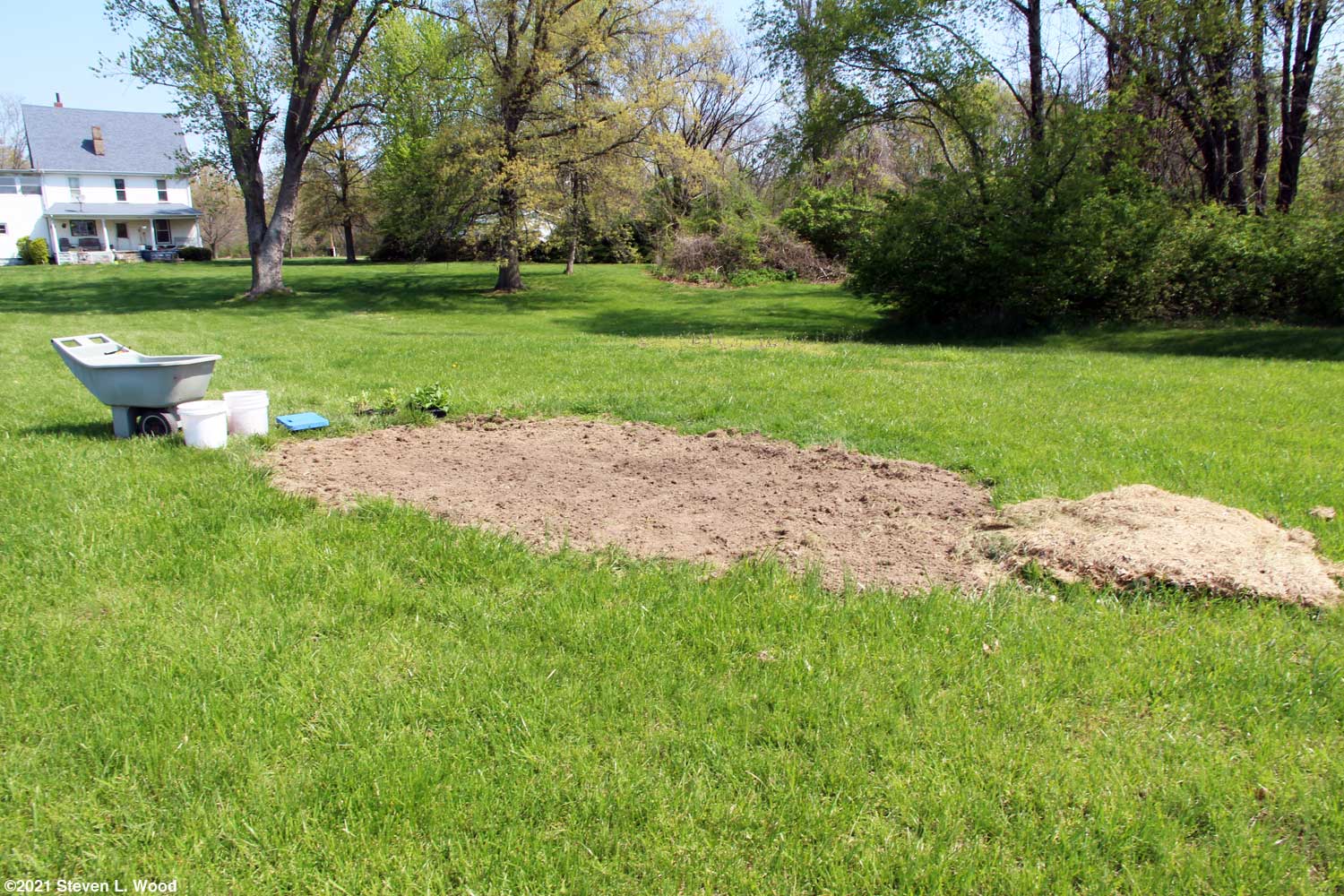 The good news is that I can now be profligate in my use of Serenade. We've lost several trees to root rot (and possibly agricultural drift) in the last few years. A glorious oak tree in our front yard got hit with herbicide drift last year which killed one side of the tree. I put in fertilizer tree spikes last fall and spread gallons of dilute Serenade around it this month. Half of the tree looks normal, while the other side of it not so good. We also use lots of Serenade as a soil soak for our potatoes and tomatoes. While not so labeled, the fungicide has been quite effective for us in fending off powdery mildew. Weather Our weather forecast still has a couple of ominous mornings for gardeners. Predictions as low as 26° F for a couple of mornings this week have me holding back on transplanting and also moving stuff like tomatoes, peppers, and peas from the basement to our cold frame. I plan to cover our lettuce, daisies, and milkweed with floating row covers for the cold mornings. And yes, our last frost date for this region is April 14. But those figures are climatic averages, and this spring seems to be a record breaker of climatic averages. Tuesday, April 20, 2021 - Mowing