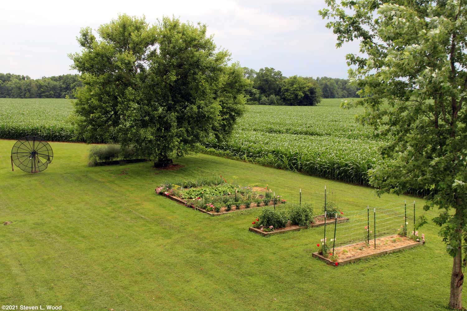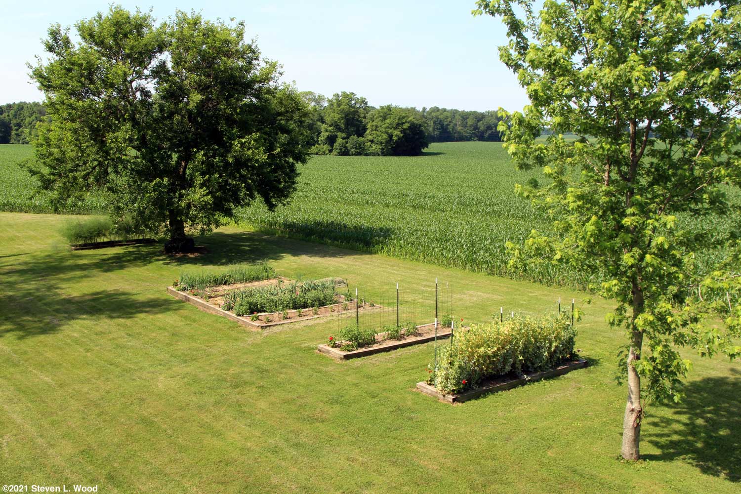 For cantaloupes, I went with longtime favorites Sugar Cube and Athena. Sugar Cubes are small, icebox size melons with incredible flavor. Athenas are large melons, also with great flavor. One of the Athena hills also had a Tam Dew honeydew plant in it. Our watermelons were a mix of open pollinated and hybrid seedless varieties. For pollinators and also great melons, I went with Ali Baba, our most dependable watermelon variety, and Crimson Sweet Virginia Select, which we trialed for the first time last season and found superior to the old standard Crimson Sweet variety. For our earliest watermelons, I planted Blacktail Mountains. They produce sweet, medium size melons early and even without full summer heat. Our seedless varieties this year are Farmers Wonderful, Red Ruby, and Kingman. We've successfully grown Farmers Wonderful melons for years. Red Ruby and Kingman are new varieties to us. For more complete information on growing melons on lousy soil, see Growing Great Melons on Heavy Clay Soil. We grow our melons on an old cornfield with heavy clay soil. We get some melons every year, and some great melons many years. I still hope to direct seed sweet corn and kidney beans into our East Garden. I've left space for them, and the soil in that area is drying out nicely. But it's getting pretty late for such crops. If I get the sweet corn in this week, it will be September before it matures. That's a far cry from my farming days when we began roadsiding 2-4 acres of sweet corn shortly after the Fourth of July. One job I wanted to do today didn't get done. I'd hoped to transplant our Japanese Long Pickling cucumbers into the narrow raised bed I'd cleaned up over the weekend. Old age and sore muscles suggested I wait a day or so for that effort. But the JLP variety is sixty days from seeding to maturity, so there's plenty of time left to get the cukes in. As I walked back to the house from our East Garden, I snapped a shot of our raised beds. Despite all the weather and critter challenges we've faced this season, we're doing pretty well. Of course, I started the day by dispatching three rabbits considering what damage they could do in our main garden with three shots of game shot early this morning. None died, but I think they got the idea. I didn't garden at all yesterday. Instead, Annie and I drove to Bloomington (IN) to see two of our daughters and four grandchildren we hadn't seen in over a year. It was a wonderful day. Busy Day