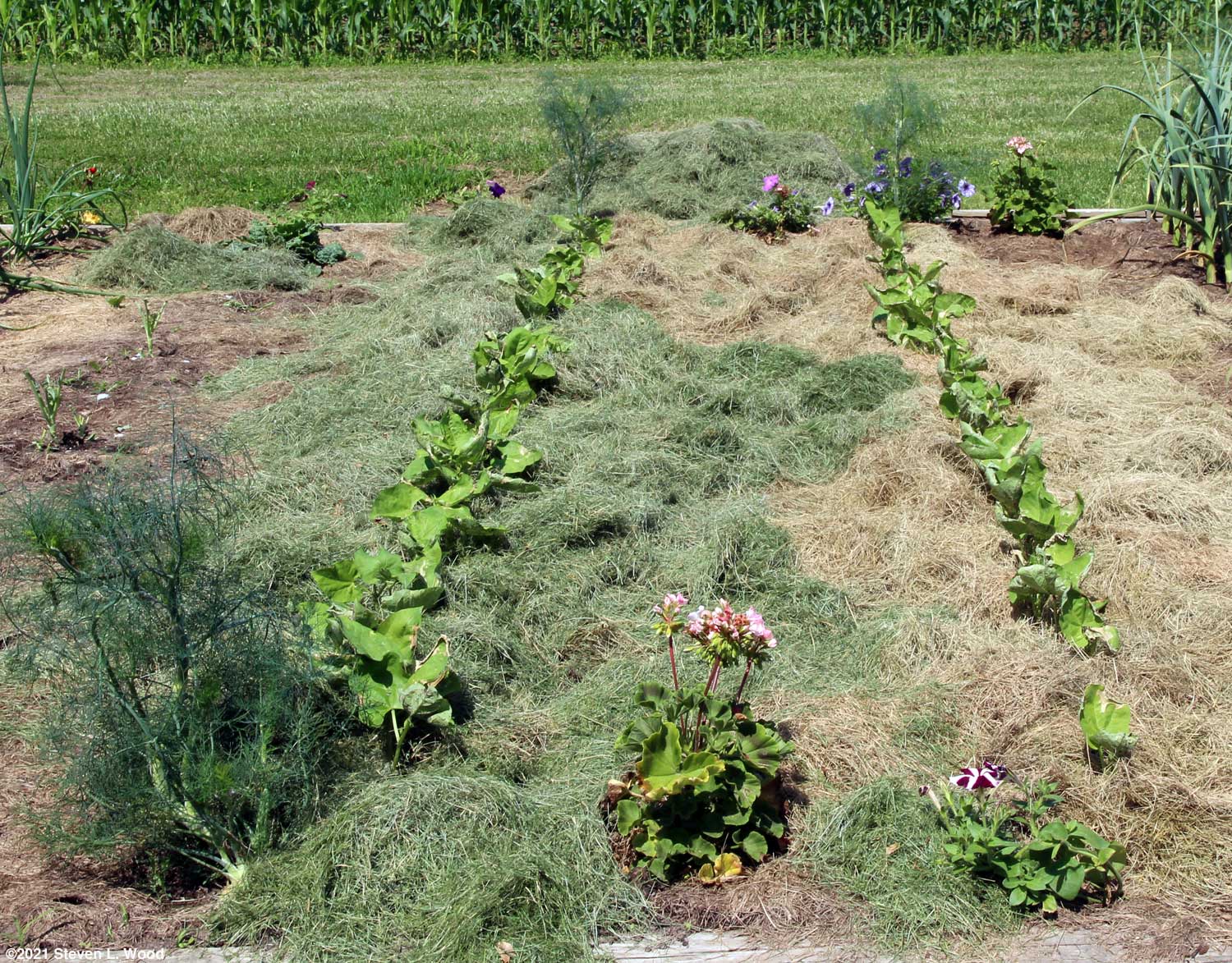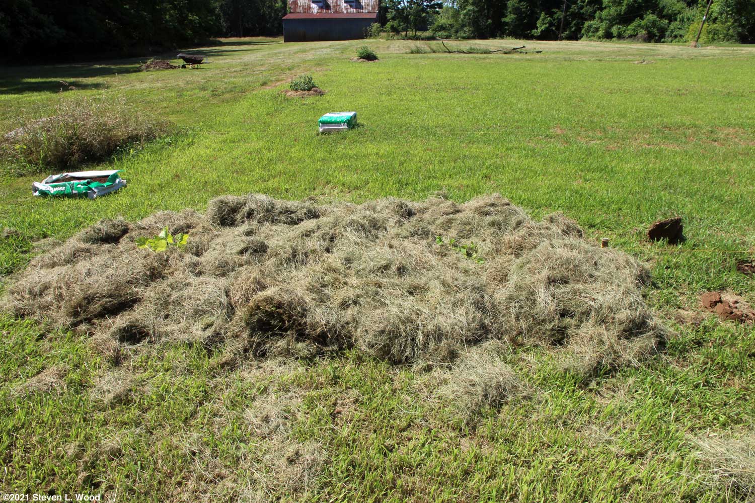 I mowed both yesterday and today. I mowed and raked our yard yesterday and mowed the field today. I also set the blades on the mower way down and scalped our East Garden plot again. When I was mowing, temperatures were in the 90s with a heat index over a hundred. While riding a mower in that heat wasn't too bad, I did some mulching that quickly became pretty hot work.