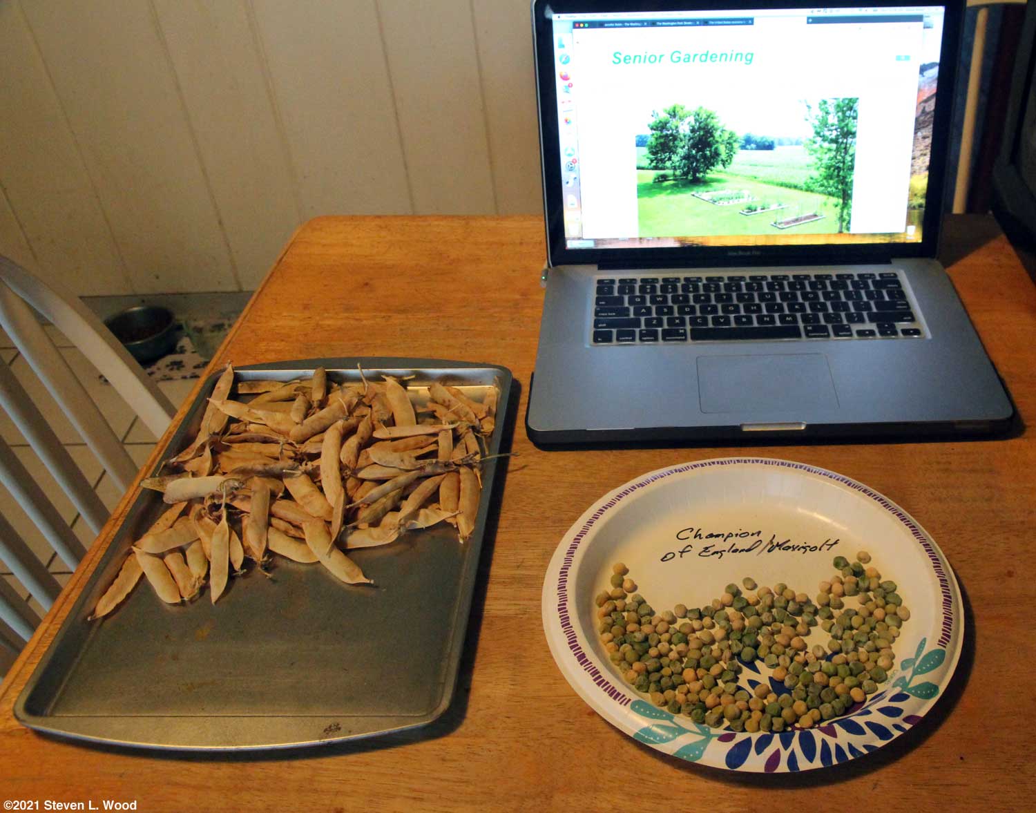 It's been a tough gardening month so far. Lots of rain that would have better come last month has made working the soil difficult. Old age has also limited my gardening. I try to get stuff done in the cooler and less UV intensive hours of the morning. But mowing and raking hay has to be done when things dry out, so I spent a lot of hours on our lawn tractor this week mowing, raking, and tilling. On the upside, my lovely wife, Annie, picked peas for me this afternoon. Combined with what I'd picked over the last few days, the peas shelled out to make another pint of supersweet peas for the freezer. Our early pea vines have browned out, so it's almost time to pull those vines and save the seed pods for seed saving. Sunday, June 20, 2021 - Father's Day
