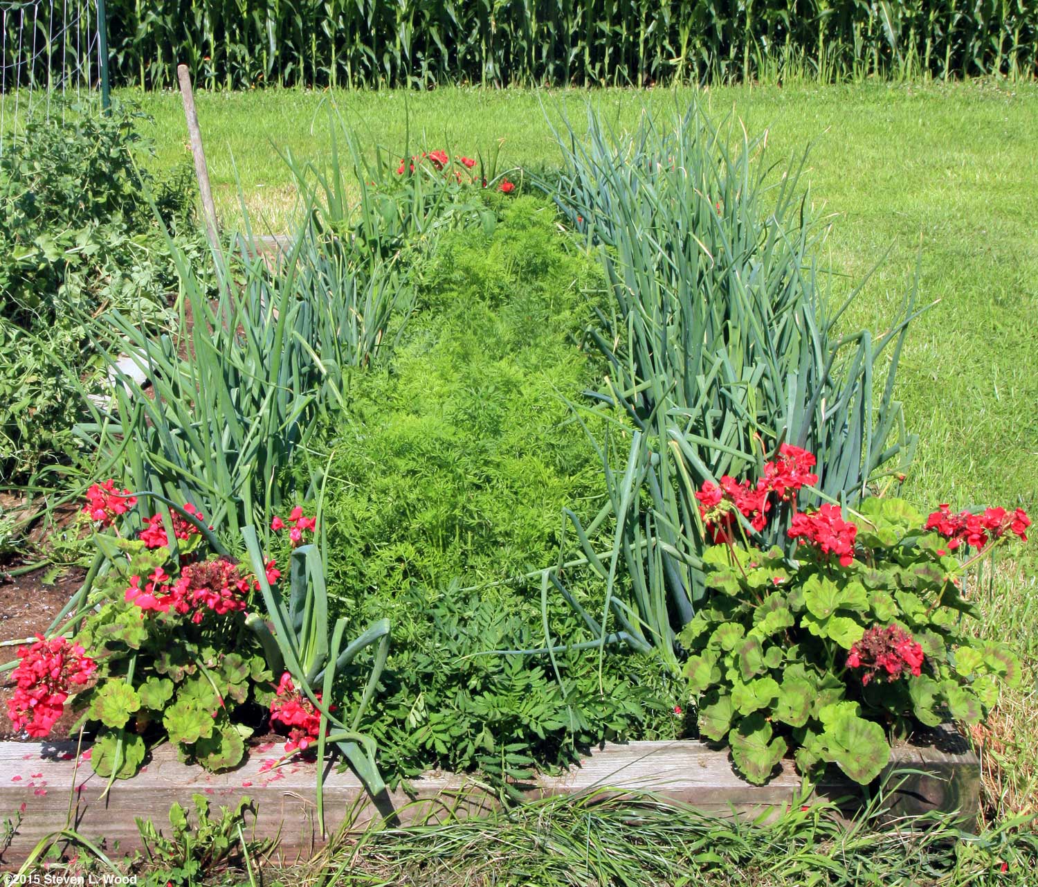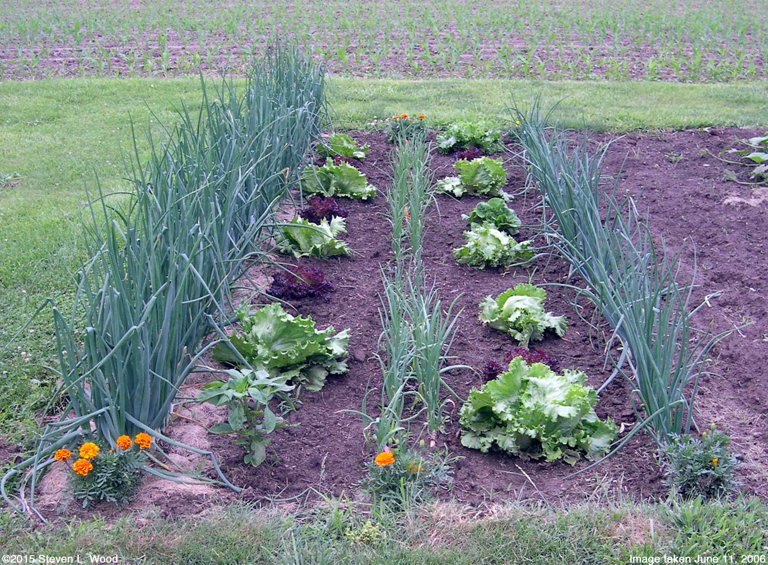 Sadly, I don't have an image of a softbed of carrots, only a slightly too wide one of onions and lettuce from the 2006 growing season. One of the main advantages of a softbed is that one always works it from outside the bed. Getting such a bed too wide makes it tough to reach the center. Depending on ones arm length and willingness to stretch, about three feet wide is just about ideal for a softbed. Note: The discrepancy between the copyright date (2015) and when the image was taken (2006) is due to copyright law requiring using the date an item is first used online or in a publication as the copyright date. The image above left hadn't been used on this or any other site until now. Raised Beds