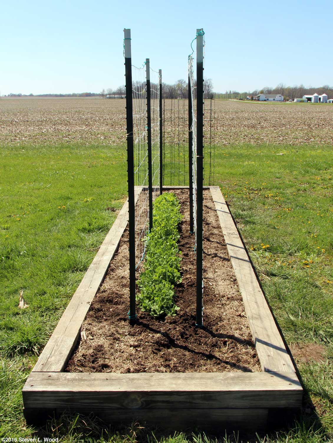 We trellis all of our peas. For years, I'd use several T-posts to support a nylon string trellis netting strung on plastic coated clothesline wire. And in most years, I'd be frustrated when part of our peas blew off the trellis in the high winds we frequently experience here. A single trellis should suffice for most folks who don't live in the equivalent of a wind tunnel. Being frustrated with losing part of our harvest, as the bent pea vines would begin to die and not mature the pea pods on them, I began experimenting. Our eventual answer to the strong winds was to grow our wide row of early peas between two trellises set about sixteen inches apart. It's not a perfect answer, but we now have far fewer vines blowing off the trellis, and of course, we're now getting lots more delicious peas from our plantings. Our short peas get a single nylon string trellis supported on clothesline wire between T-posts. Since I only need a trellis about three feet tall, I often cut down old trellis netting that is too ratty to use for our tall peas to about three feet and patch the good sections together for the netting. Treating Pea Seed You may have noticed that I specified "treated pea seed" for our early plantings. Pea seed is prone to rot in cold, wet ground. Since all of our pea seed, saved and commercial, is untreated, I treat the early pea seed myself with Captan Care Since we mulch along our pea plantings with grass clippings, we don't have to do a lot of weeding in our pea rows. Early on, we have to pull a few weeds in the row, but that's about it. (Do remember that I'm a passionate gardener who walks his garden plots every morning in the spring, pulling weeds and seeing what else needs to be done.) When growing our first seed crop of Eclipse peas in our East Garden, I found when weeding that the young pea vines were incredibly brittle. I was able to correct that problem by spreading and pushing damp compost around the young vines. For the most part, peas are usually a disease and insect free crop. Occasionally, an insect invasion will require a spray of Pyrethrin or Neem Oil. In damp seasons or in a somewhat shaded growing area, spraying with a fungicide may be necessary to prevent powdery mildew. Since our raised beds have pretty good soil, a bit of compost or a very light sidedressing of 12-12-12 commercial fertilizer is about all the help our peas get through the season. Fall Peas We've had mixed luck with growing peas in the fall. Getting the plants up out of the ground early enough for them to mature before our first frost is a real problem. It's usually quite dry here in late July and early August. Mid-summer plantings require lots of watering to get the seed to germinate. But once the plants are up out of the ground, it's pretty smooth sailing, other than a few bugs and powdery mildew problems. I've included a couple of links at the end of this article to excellent web pages that give a lot more information about growing fall peas. Edible Pod Peas